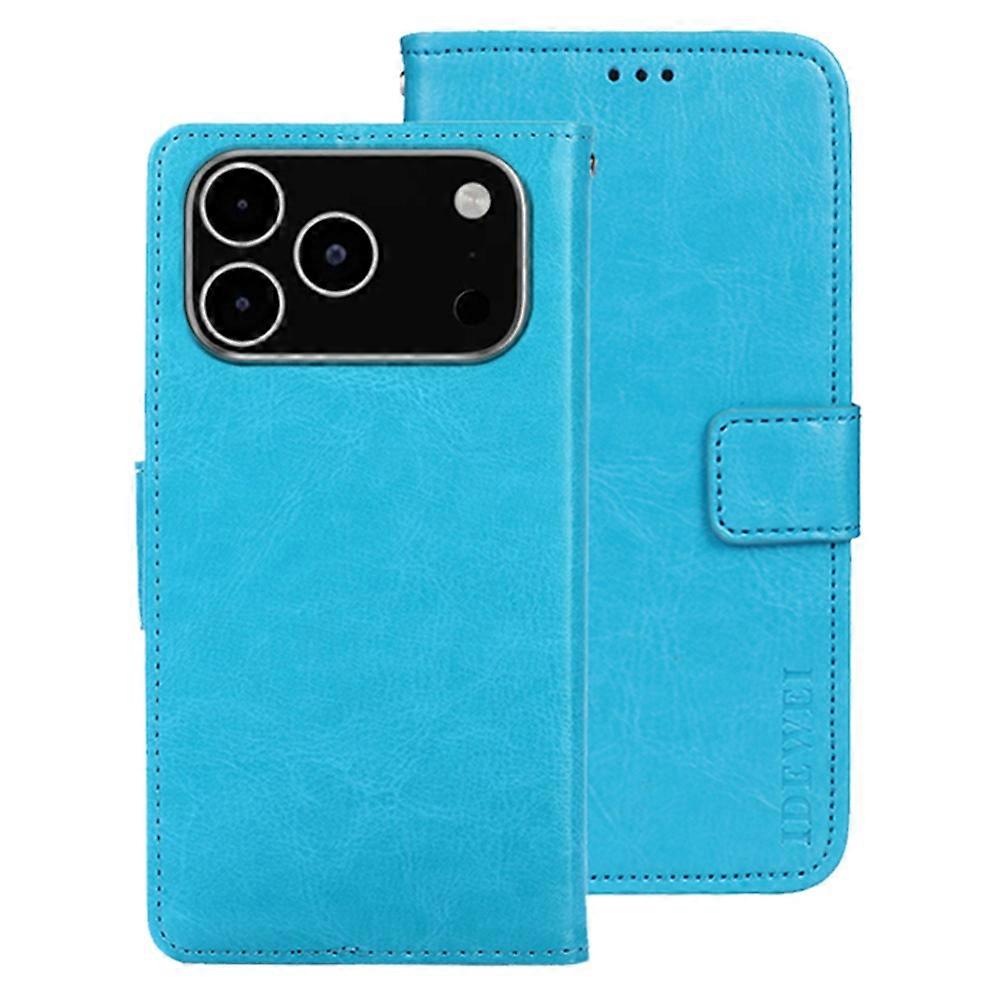 IDEWEI For iPhone 17 Pro Max Stand Case Crazy Horse Texture Leather Phone Cover - Sky Blue