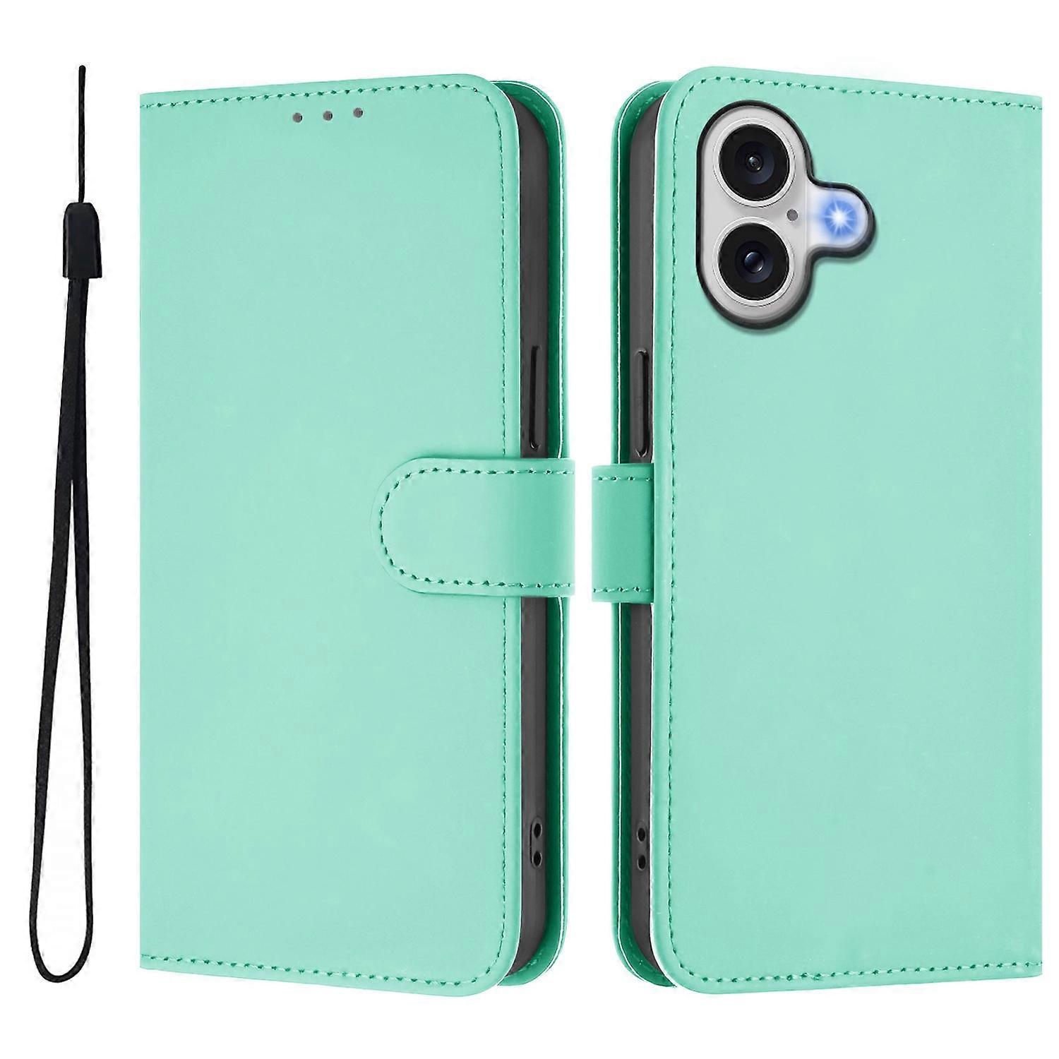 For iPhone 17 Case Solid Color Wallet Leather Phone Cover with Strap - Mint Green