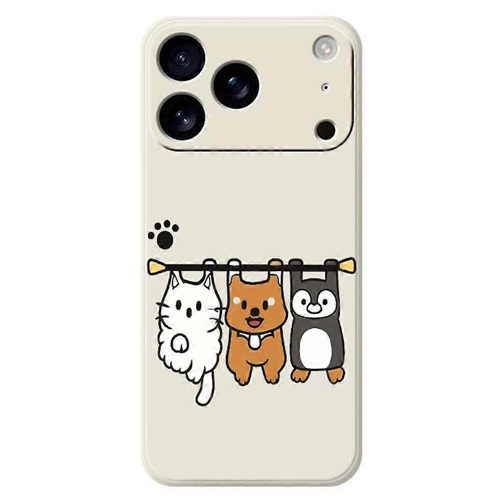 For iPhone 17 Pro Case Three Animal Dolls Pattern Printing Straight Edge TPU Phone Back Cover - Beig