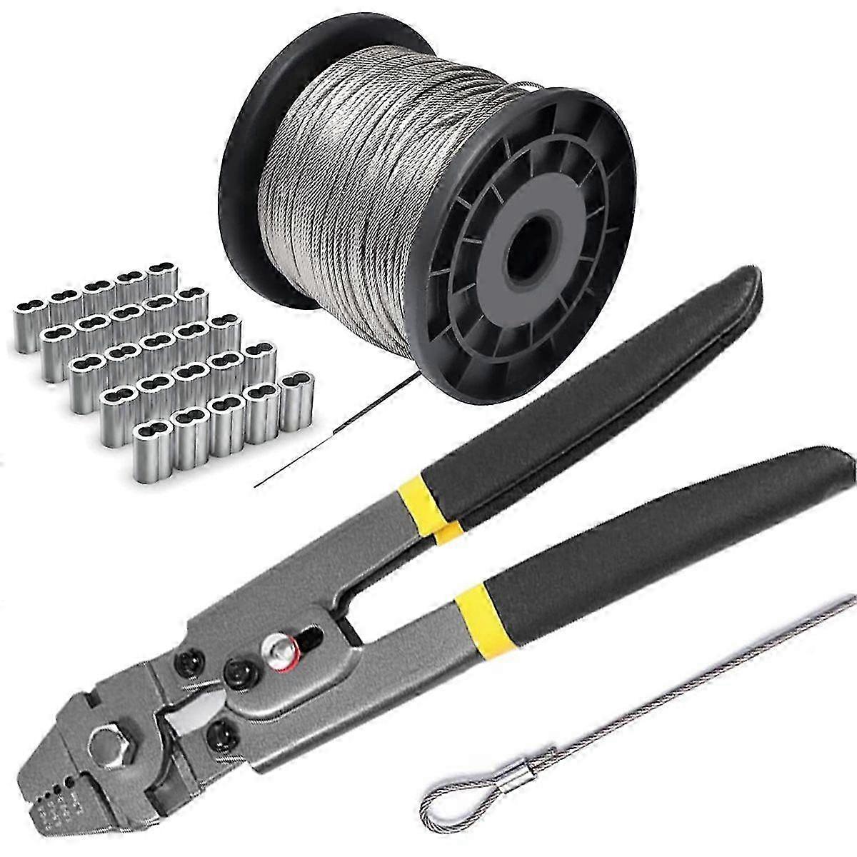 Wire Rope Crimping Tool Kit with 165ft Stainless Steel Cable & 100 Ferrules-tl