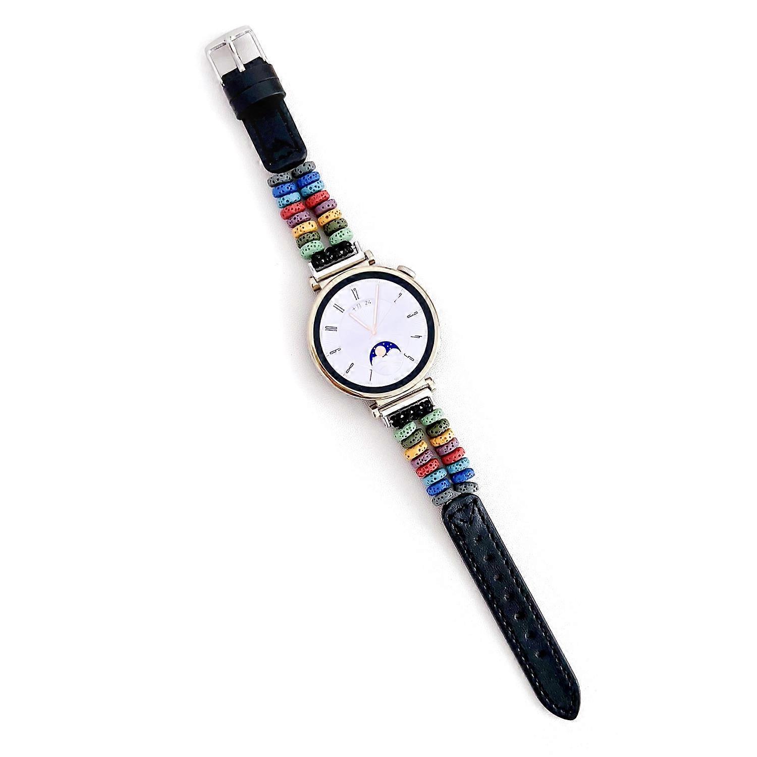 For Huawei Watch GT 4 41mm/Garmin Venu 3S 18mm Leather Watch Strap Volcanic Rock Beads Band