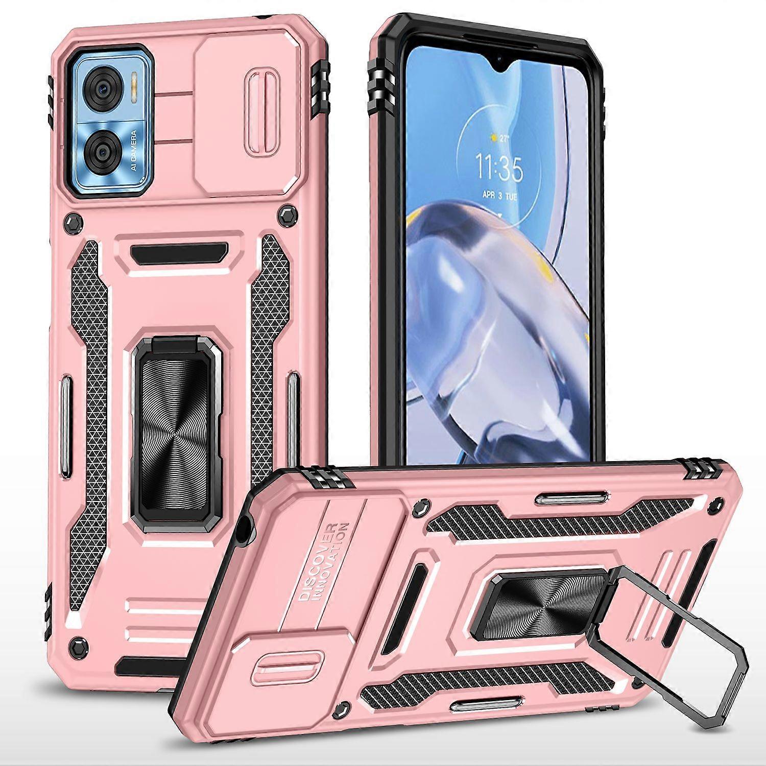 For Motorola Moto E22 4G Armor Series PC+TPU Cover Slide Lens Lid Phone Case with Kickstand
