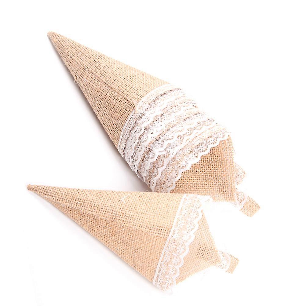 Rustic Flower Holder Burlap Cone Organizer Wedding Ceremony Decoration Beige 11.5 X 23 Cm 10Pack