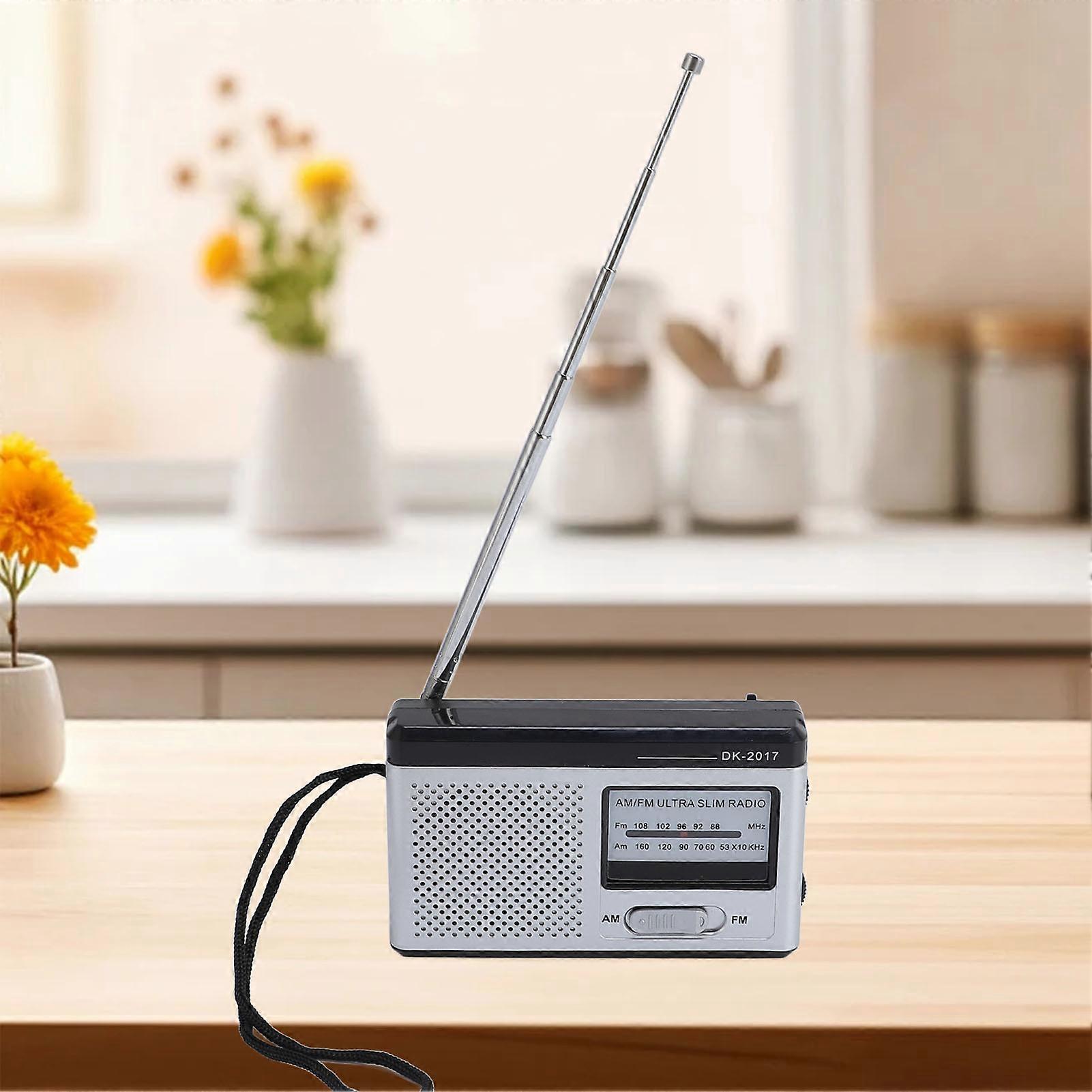 DK-2017 Portable FM AM Radio, Battery Powered, Silver Black