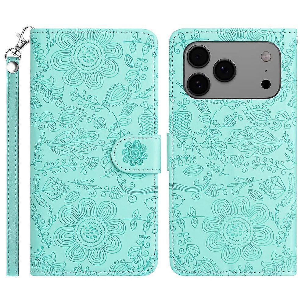 For iPhone 17 Pro Max Case Flower Imprint Leather Flip Wallet Phone Cover with Wrist Strap