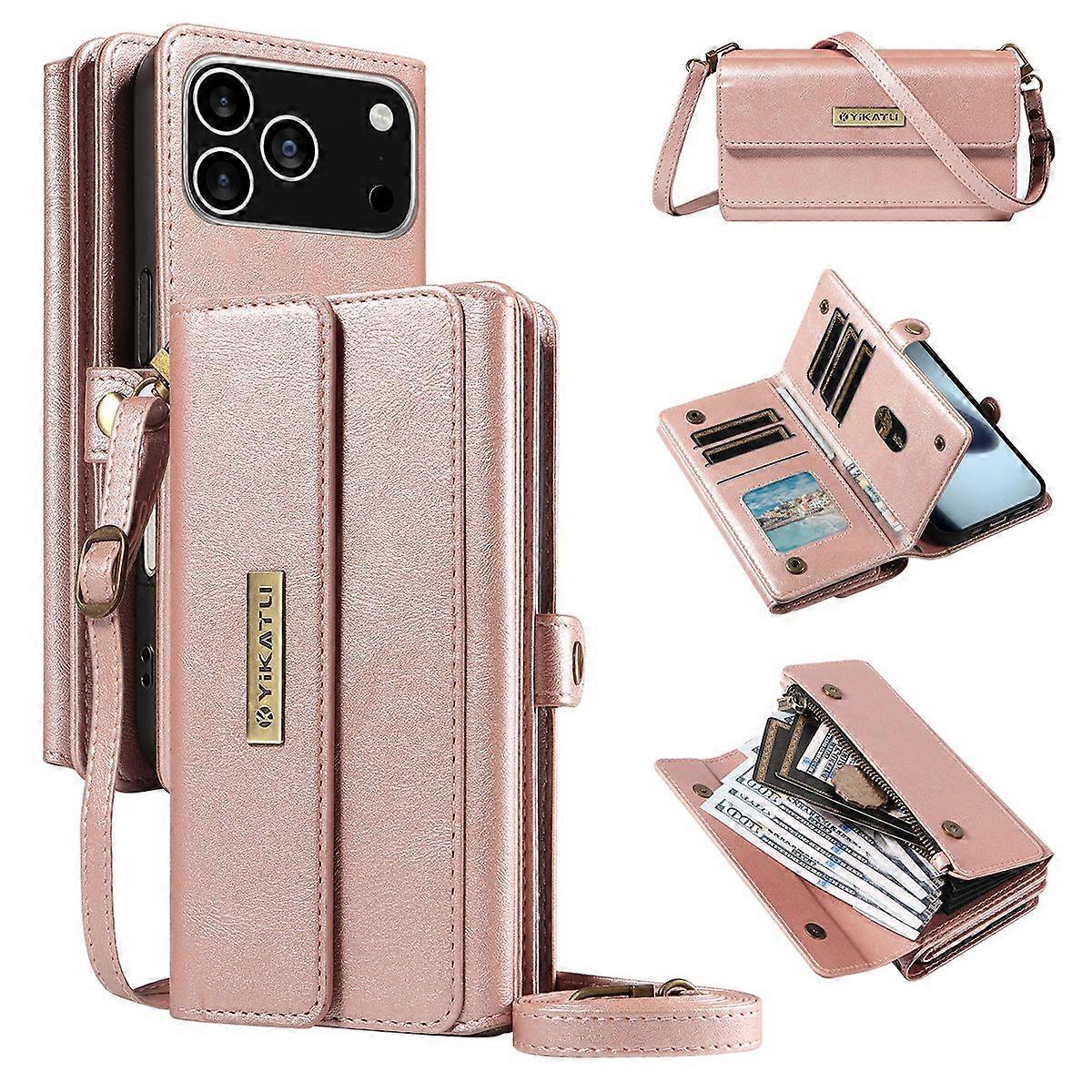 For iPhone 17 Pro Case YIKATU YK-008 Zipper Wallet Leather Phone Cover with Shoulder Strap