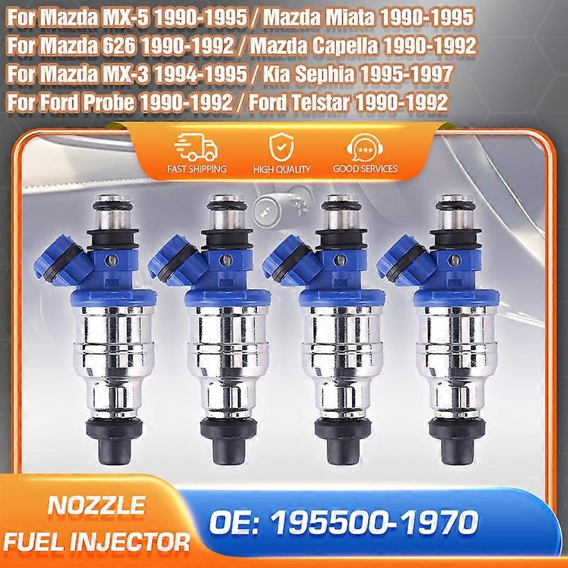 Specifications:Hign-concerned Chemical:None:Origin:Mainland China:OEM NO.:195500-1970:Material:ABS Plastic & Metal:Replaces OEM Part Number:195500-1970, B6S7-13-250, 822-12104:Description:Fuel Injector Nozzle:Fit for 1:For Mazda MX-5 1990-1995:Fit for 2:For Mazda Miata 1990-1995:Fit for 3:For Mazda 626 1990-1992:Fit for 4:For Mazda Capella 1990-1992:Fit for 5:For Mazda MX-3 1994-1995:Fit for 6:For Kia Sephia 1995-1997:Fit for 7:For Ford Probe 1990-1992:Fit for 8:For Ford Telstar 1990-1992:Installation Method:Directly Plug and Play:modname=ckeditor:For Mazda MX-5 (NA) MK1 1.6L L4 1990-1995:For Mazda Miata 1.6L L4 1990-1995:For Mazda 626 2.2L L4 1990-1992:For Mazda Capella (GD/GV) MK4 2.2L L4 1990-1992:For Mazda MX-3 1.6L L4 1994-1995:For Kia Sephia MK1 1.6L L4 1995-1997:For Ford Probe MK1 2.2L L4 1990-1992:For Ford Telstar (AT, AV) MK2 2.2L L4 1990-1992