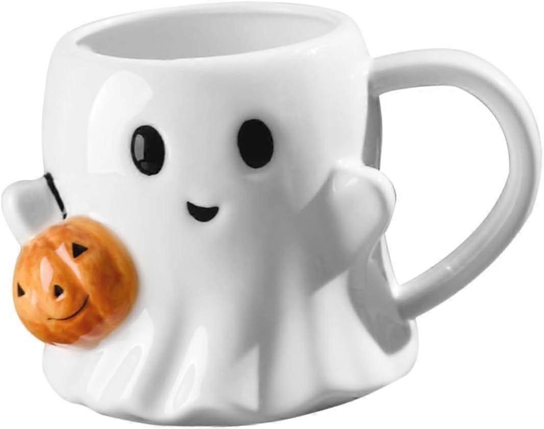 Halloween Coffee Mug, Cute Ceramic Ghost Pattern Coffee Mug, White Pumpkin Ghost Mugs, Cute Handmade Halloween Gifts for Kids Adult