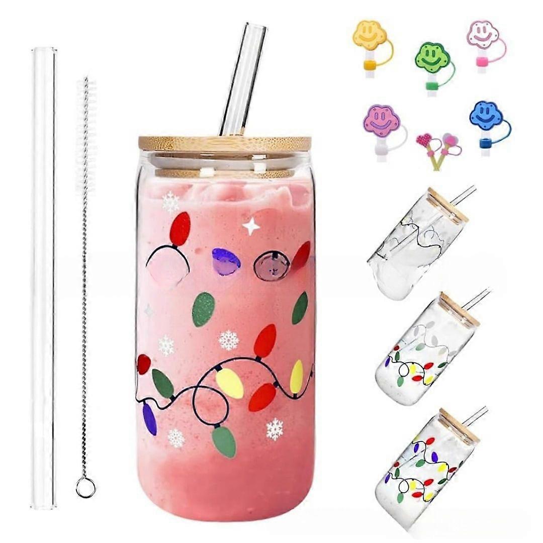 Color Changing Cups With Lids And Straws, Cute Glass Cups Iced Coffee Cup Glasses Drinking Glass Tumbler Reusable Travel Coffee Mug For Cocktail, Vale