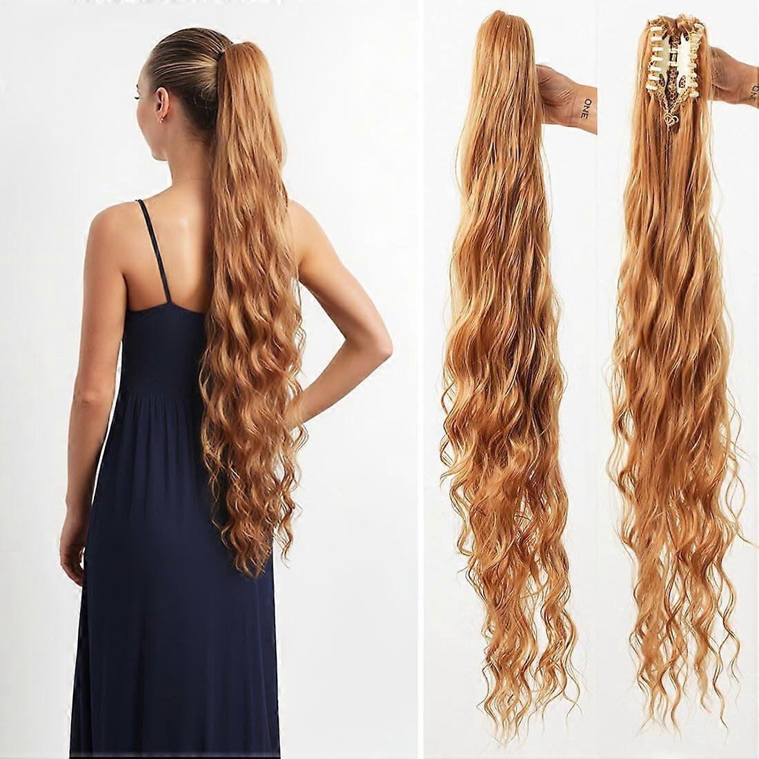 34 Inch Claw Clip High Ponytail Hair Extension Synthetic Loose Curly Ponytail Hairpiece Strawberry Blonde Thick Fluffy