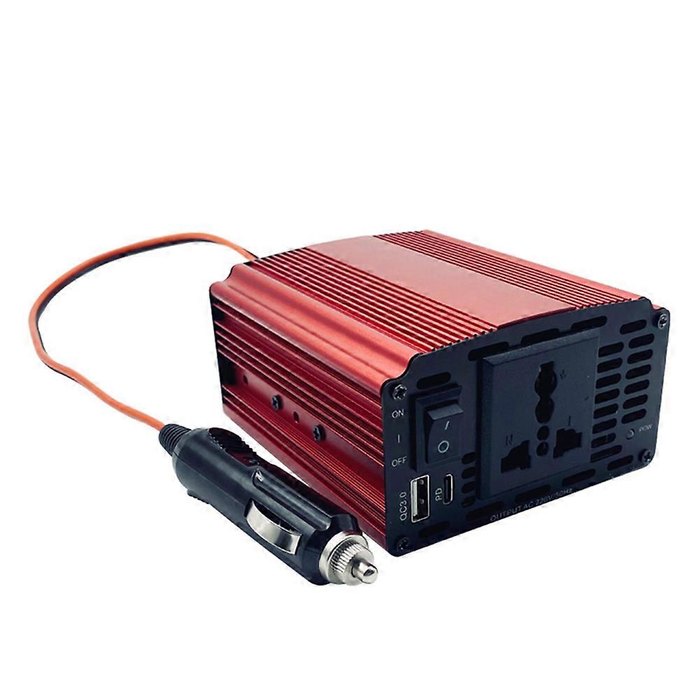 300W Power Inverter 12V to 220V AC Car Plug Adapter for Car Cigarette Lighter, Outlet Converter with Alligator Clip USB + Type-C Car Charger for Phone Laptop Computer Features: 【Quick Charging】300W power inverter with one 220V AC outlets for charging larger devices such as laptops and tablets, 1 USB(1A) and 1 type-c(2A) charging ports.  【Widely Applicable】Power inverter for car cigarette lighter can be used to charge your phones, iPads, tablets, cameras, laptop, earphone and etc. Ideal for travel and emergency charging. 【Full Protection】Power inverter 12v to 220v with low voltage protection, overvoltage protection, overload protection, over temperature protection and short circuit protection. 【Compact and Lightweight】Car power inverter is small and light, easy to store and carry. It can be plugged into almost any vehicle. Perfect for use on vacations, work trips, and camping.  【Durable Material】Digital power inverter made with aluminum alloy housing, well protection from drop and bump. Designed with smart cooling fan system makes the car power inverter very silent when operating. Specifications: Color: Red Material: Aluminum alloy Plug: US plug / EU plug (optional) Voltage: 110V / 220V Rated Power: 300W Max peak power: 600W Output frequency: 60Hz(110V), 50Hz(220V) USB output: USB3.0(5V,1A) Type-c output: (5V,2A) Output waveform: Correction wave Output efficiency: 80%-90% Heat dissipation mode: DC12V fan Size: 11 * 10.5 * 5.6cm / 4.3 * 4.1 * 2.2in Weight: 530g / 18.7oz Package Size: 13 * 8 * 8cm / 5.1 * 3.1 * 3.1in Package Weight: 572g / 20.2oz Packing List: 1 * Power inverter 1 * Cigarette lighter 1 * Alligator clip 1 * Instruction