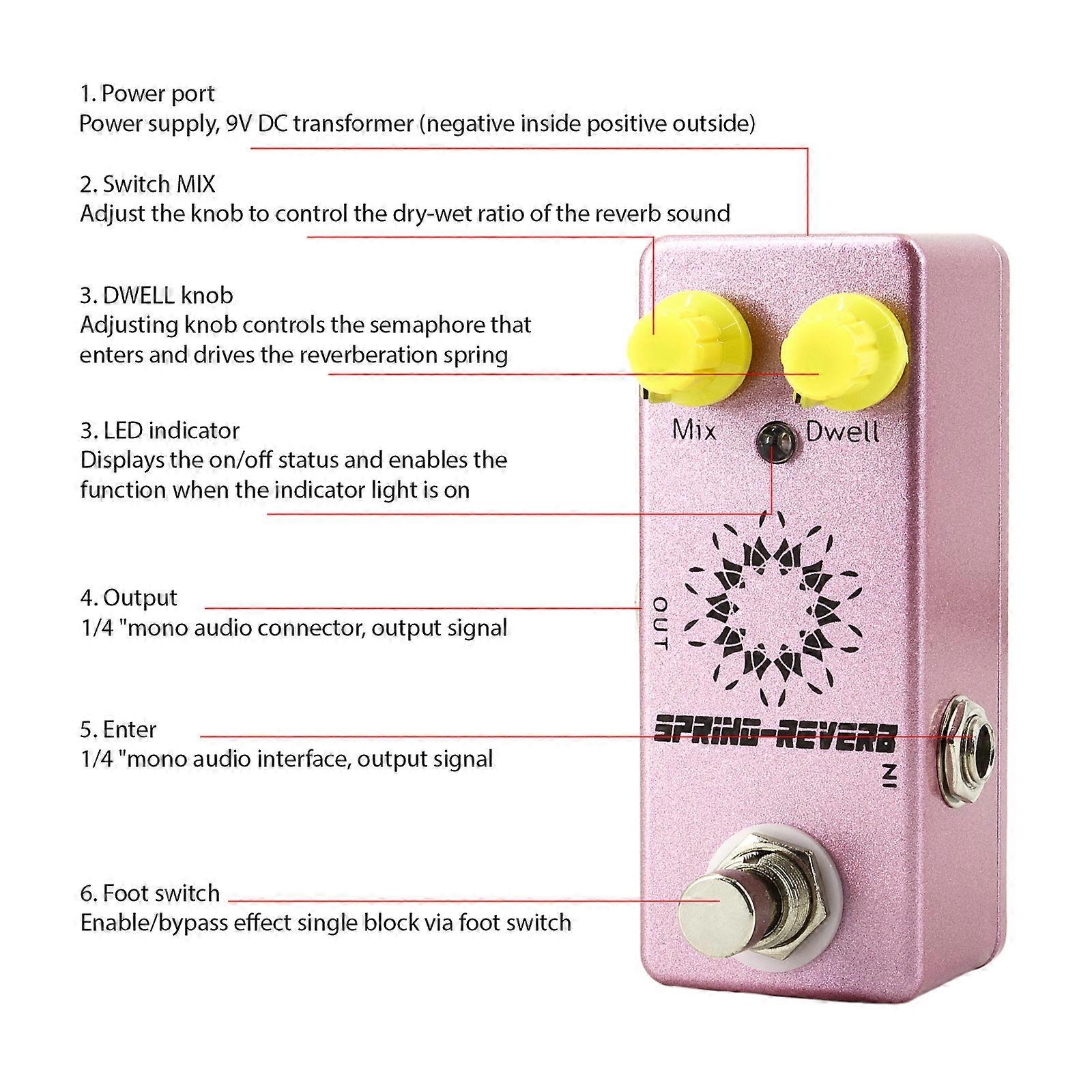 Guitar Spring Rever Pedal, Zinc Alloy, Pink, 9.4x3.9x3.3cm, 9V DC