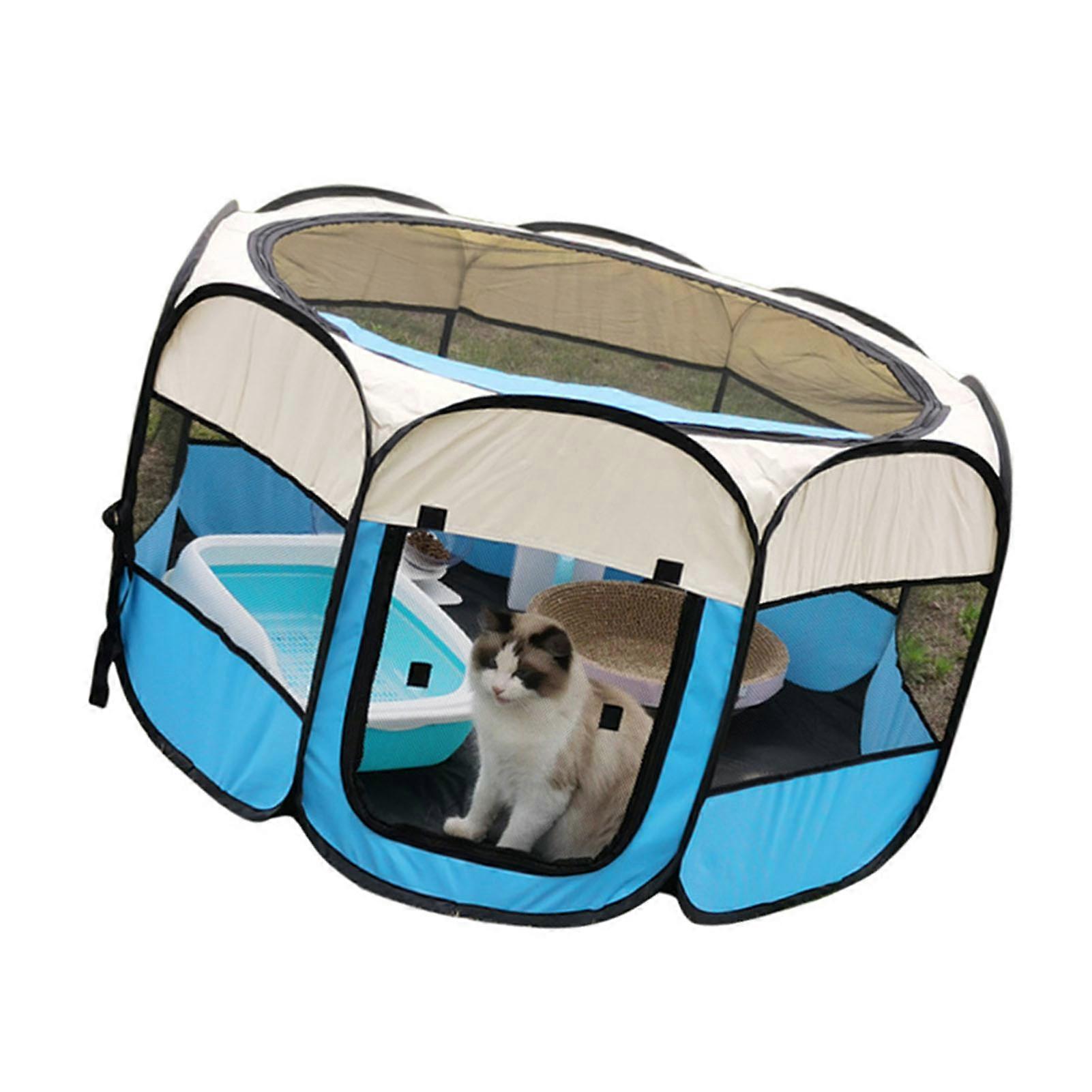 Cat Foldable Playpen Tent Enclosed Portable Specious Versatile Pet Dog Playpen for Indoor Outdoor Item Type: Pet Cat Playpen Material: Oxford Cloth Size: Unfolded: Approx. 90 x 90 x 58cm / 35.4 x 35.4 x 22.8in, Folded: Approx. 37 x 60 x 4cm / 14.6 x 23.6 x 1.6in