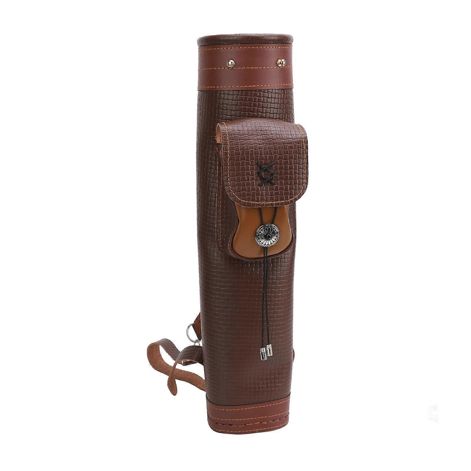 Cowhide Leather Archery Arrow Quiver with Pocket Brown 730g