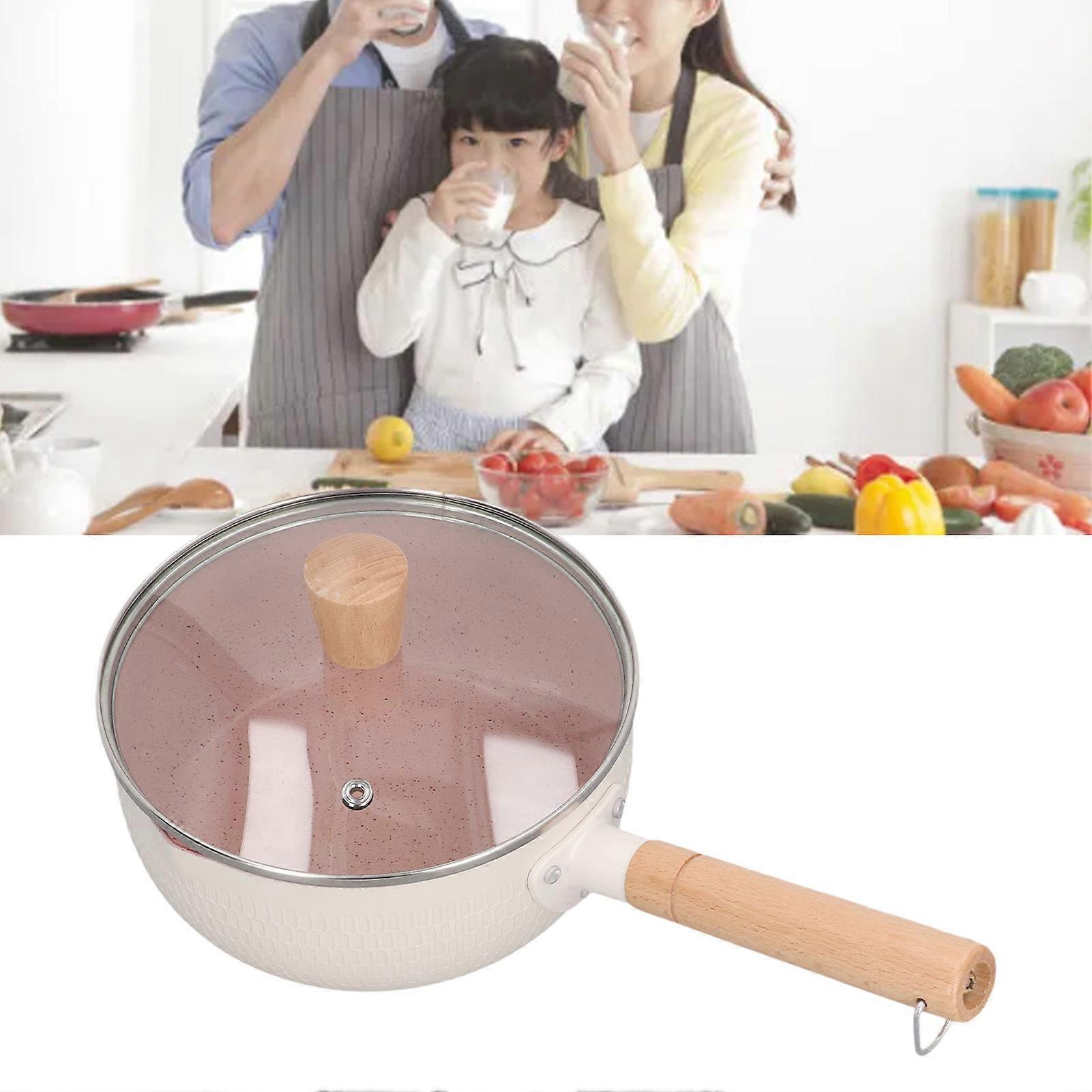 Non Stick Aluminum Saucepan with Wooden Handle & Lid, White