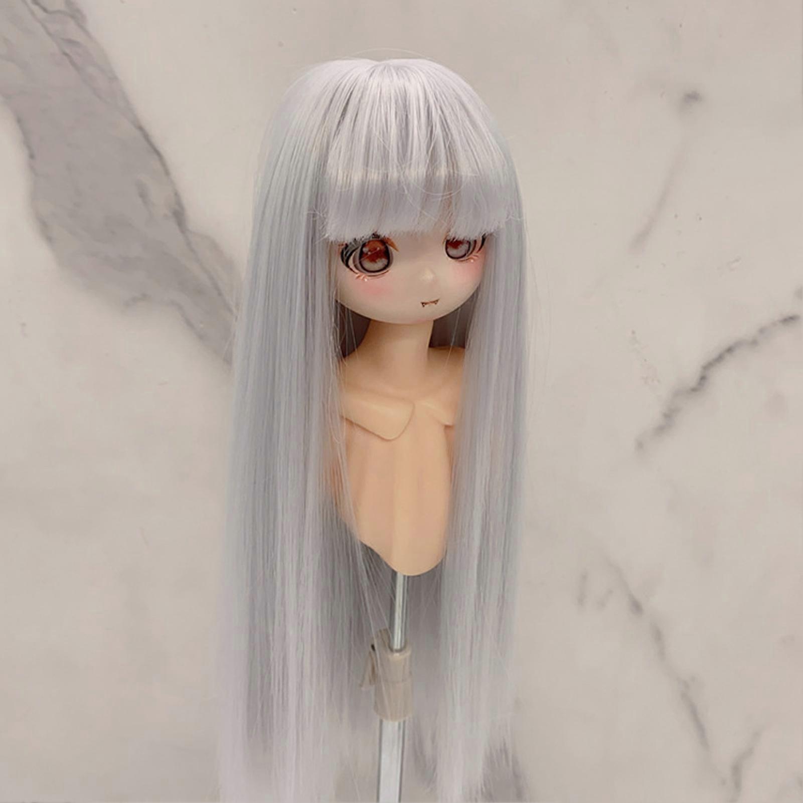 Doll Long Straight Wig with Bangs Silver Grey White 1/4 18.5‑21cm