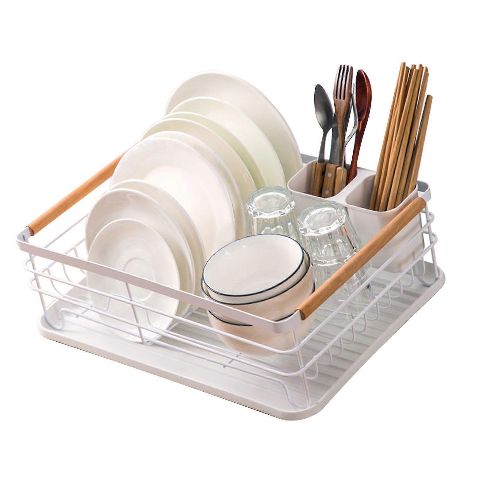 Dish Drying Rack Carbon Steel Multifunctional Wooden Handle Dish Drainer Utensil Holder for Kitchen Tabletop Item Type: Dish Drying Rack Material: Carbon Steel Weight: Approx. 500 g / 17.6 oz