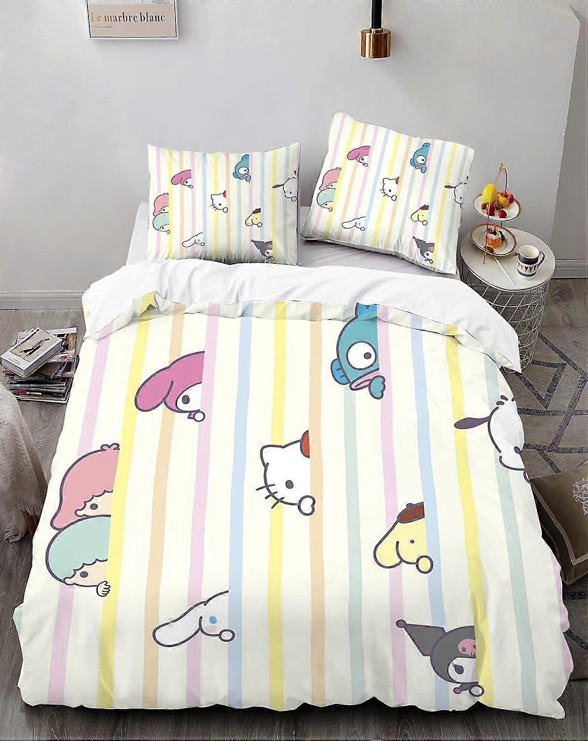 Cartoon 3 Piece Bedding Set Cute Cat Anime Comforter Set Cute Duvet Cover Sets Super Soft Girls Bedding Set Kids Bedroom Gifts,1 Duvet Cover with 2 Pi