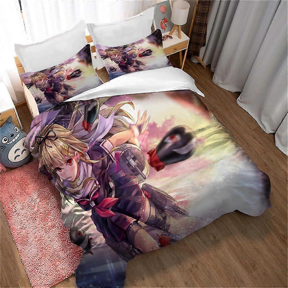Duvet Cover Set Reversible Kantai Collection Bedding Quilt Covers Pillowcases Linen Look Cotton Rich Premium Bedding 140x200cm