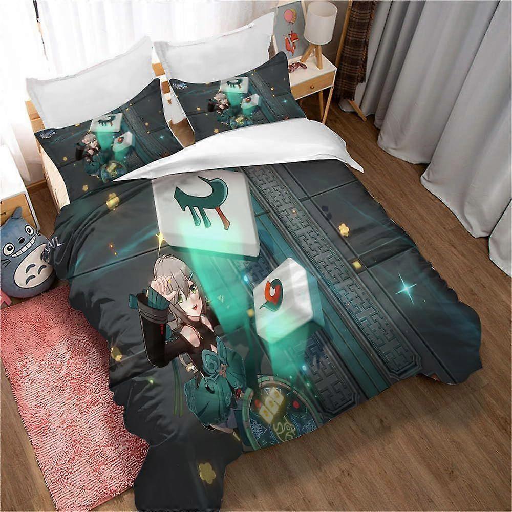 Duvet Cover Set Reversible Honkai Star Rail Bedding Quilt Covers Pillowcases Linen Look Cotton Rich Premium Bedding 140x200cm