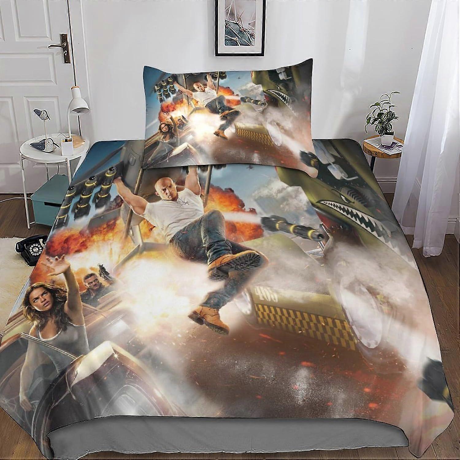 Fast & Furious 3D Bedding Set Duvet Cover 3-Piece Soft Microfiber with Zipper Closure for Child Teen Adult Bedroom Quilt Cover Set 140x200cm