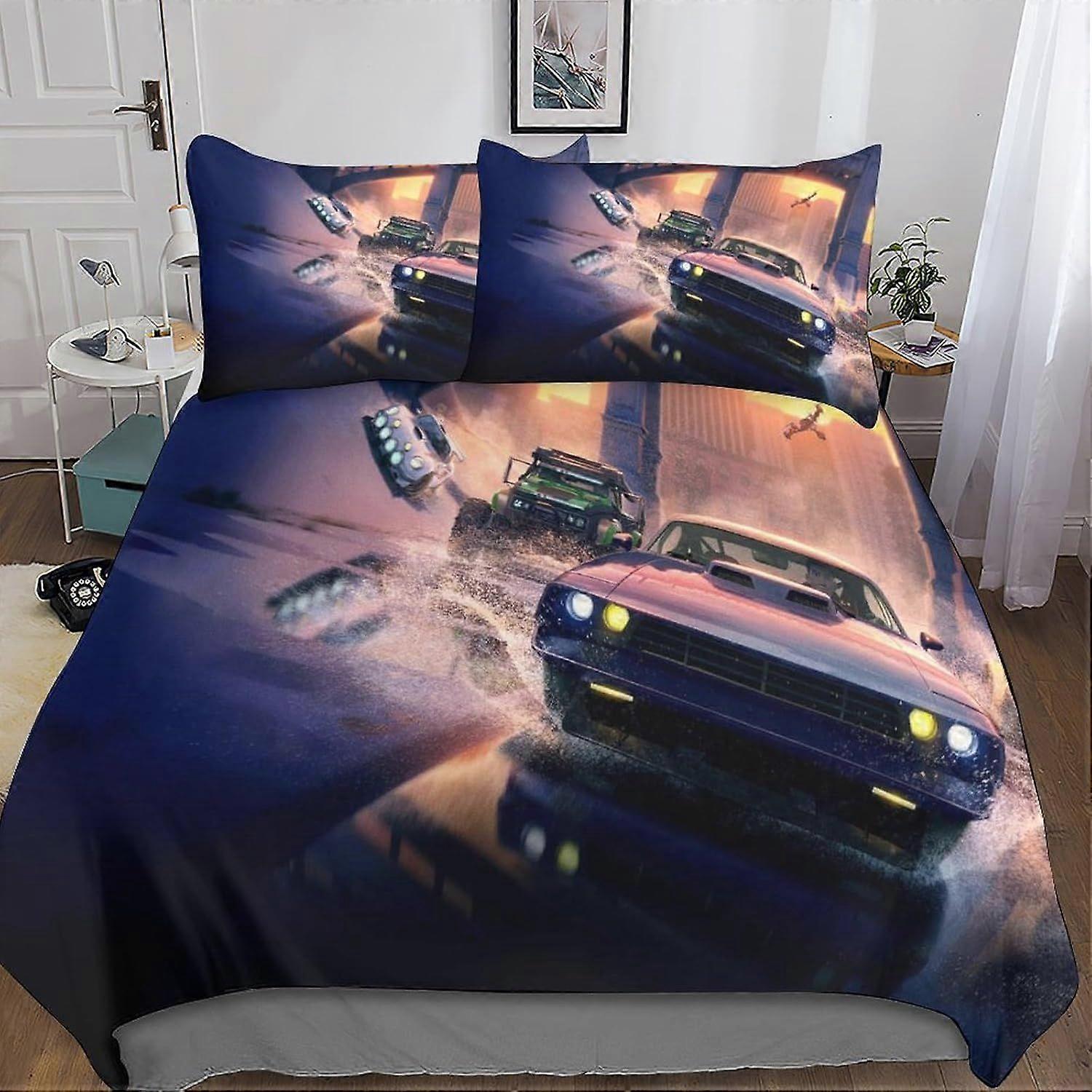 Fast & Furious Duvet Cover Set Bedding Soft Microfiber Comforter Cover Boys Girls 3-Piece Bedding Set Quilt Cover Hidden Zipper for in Kids Teens Adul