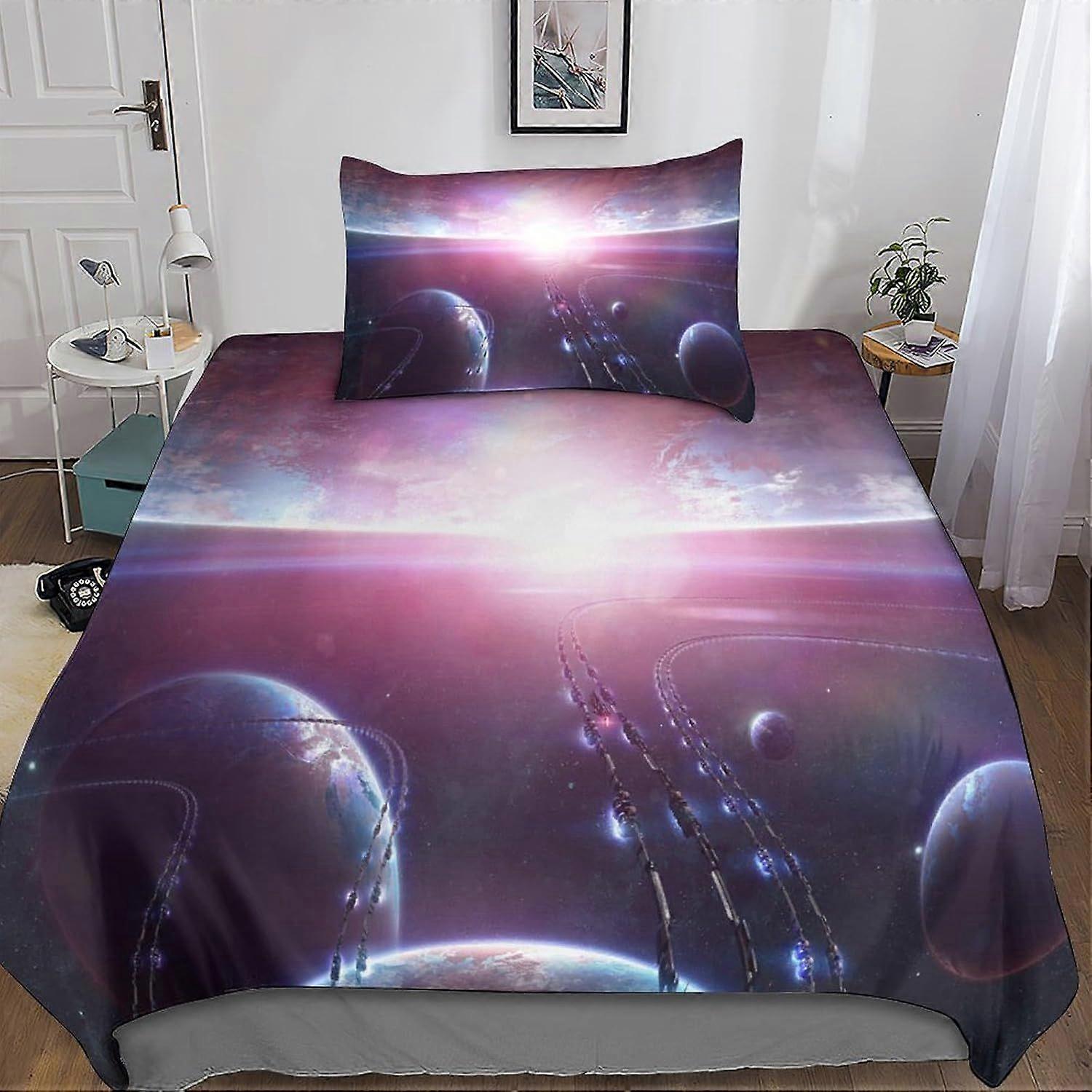3D Galaxy Duvet Cover Set for Kids Youth Adult Duvet Cover Single Size Bedding Set with Pillowcases Soft Breathable Microfiber Quilt Cover with Zipper