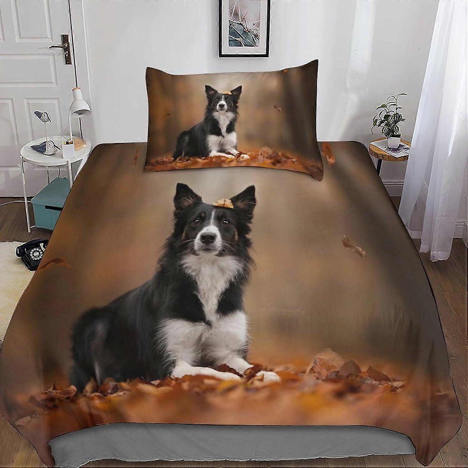 Single Size Duvet Cover Set Border Collie Printed Duvet Cover Bedding Set Soft Microfiber Easy Care Breathable for Boys Girls Adult Hypoallergenic Qui