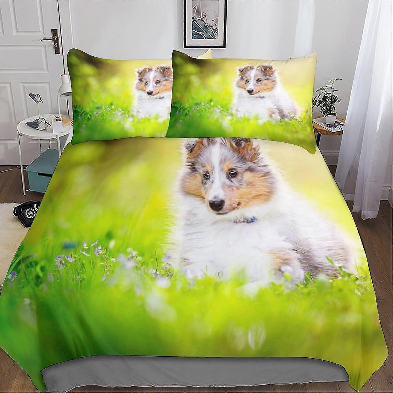 Single Size Duvet Cover Set Border Collie Printed Duvet Cover Bedding Set Soft Microfiber Easy Care Breathable for Boys Girls Adult Hypoallergenic Qui