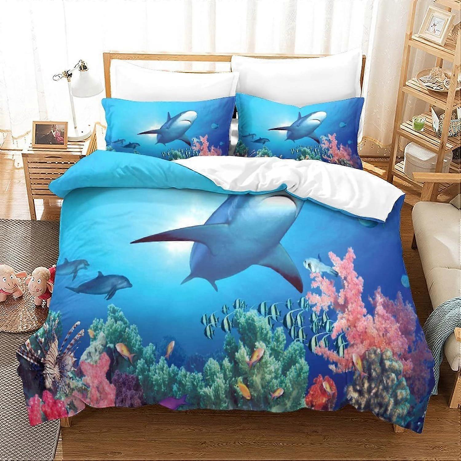 Shark Duvet Cover Set for Kids Youth Adults Duvet Covers King Size Bedding Set with Pillowcases Soft Microfiber Quilt Cover with Zipper Closure Easy C