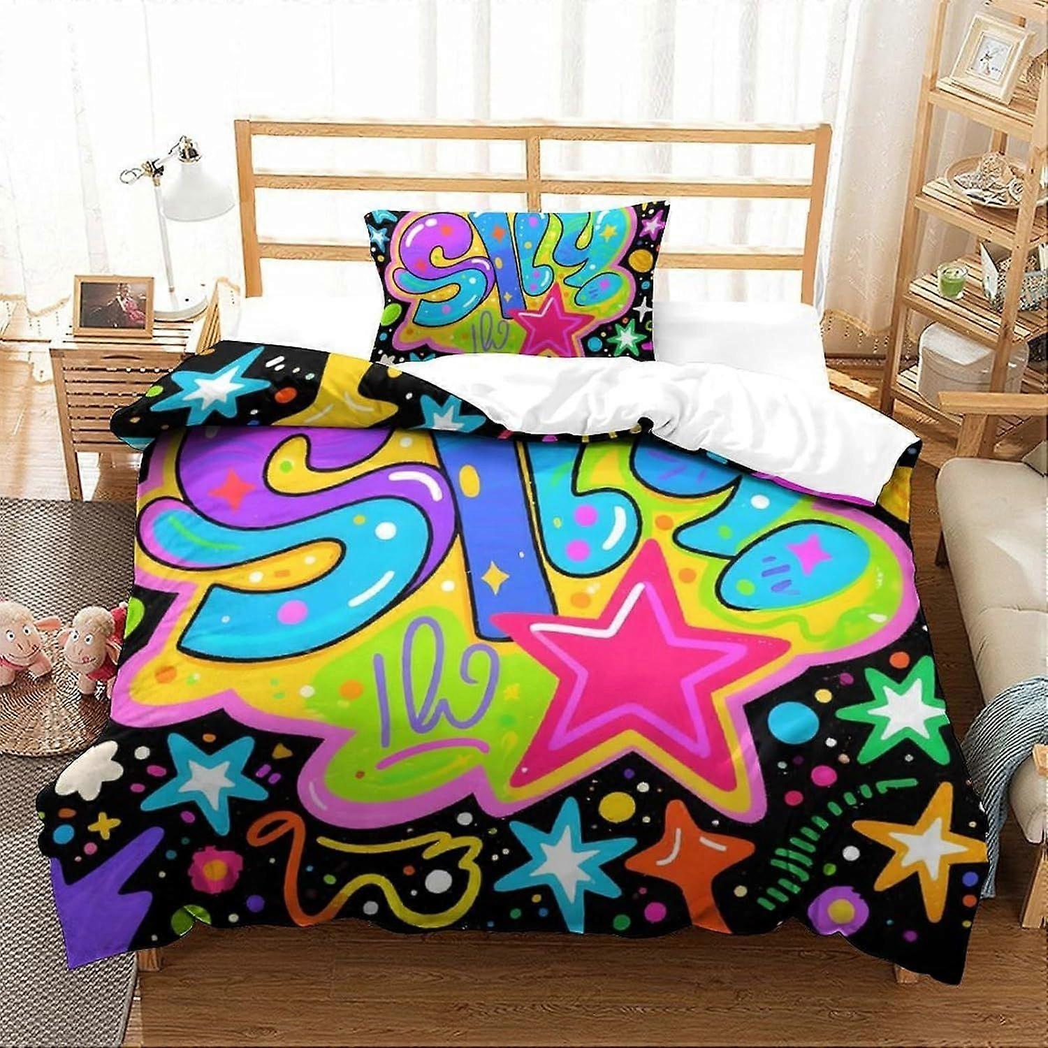 Graffiti Duvet Cover Set 3 PCS Hotel Quality Quilt Cover Bedding Sets Bed Covers with Pillowcases with Zipper Closure Hypoallergenic Soft Breathable M
