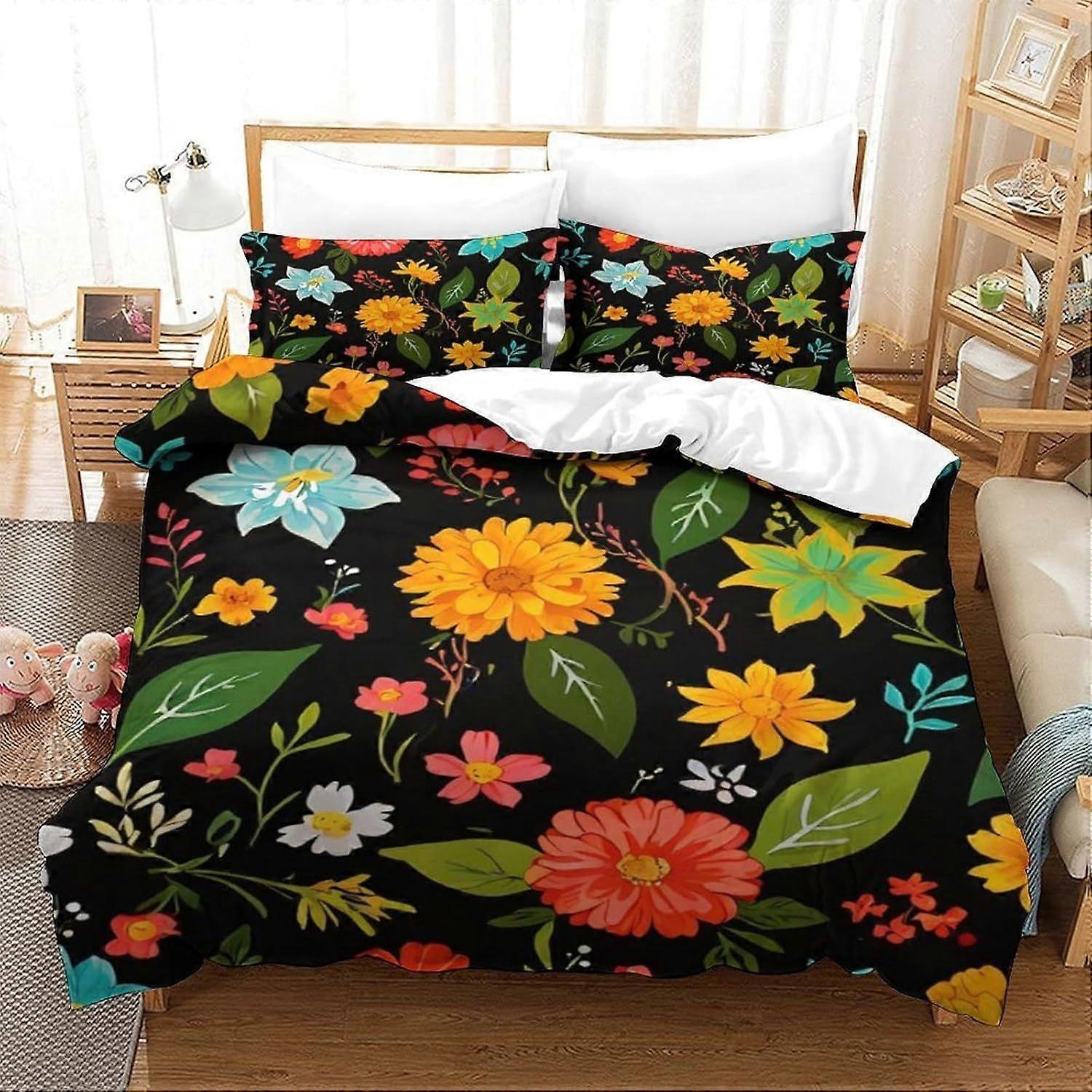 Floral Print Duvet Cover 3 PCS Hotel Quality Quilt Cover Bedding Bed Covers with Pillowcases with Zipper Closure Ultra Soft Anti Allergic Microfiber 1