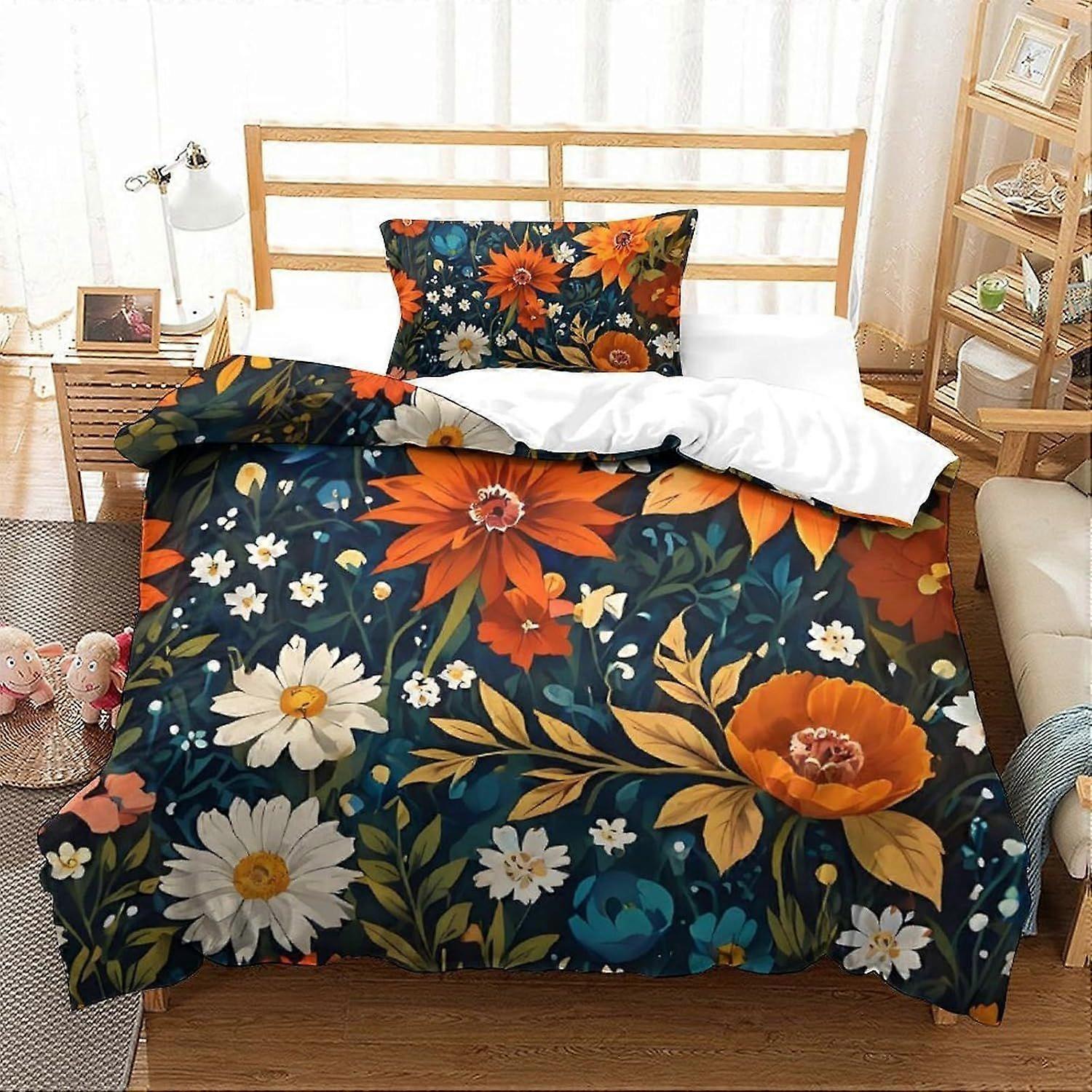 Floral Print Duvet Cover Bedding Set,3D Duvet Cover with Pillowcases, for Soft Microfiber Quilt Cover with Zipper Closure 3 Piece Set 140x200cm