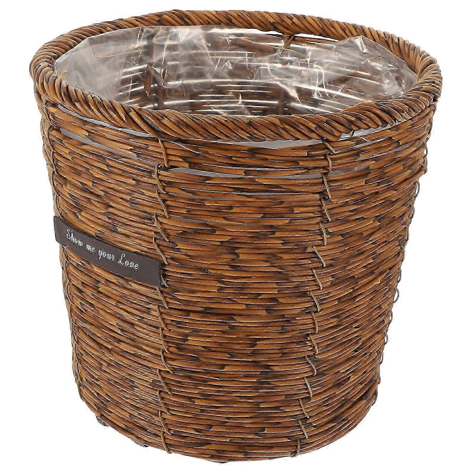Coffee-Coloured Rattan Decorative Basket, Minimalist Flower Holder for Garden, 22x22x20cm, 1-Pack