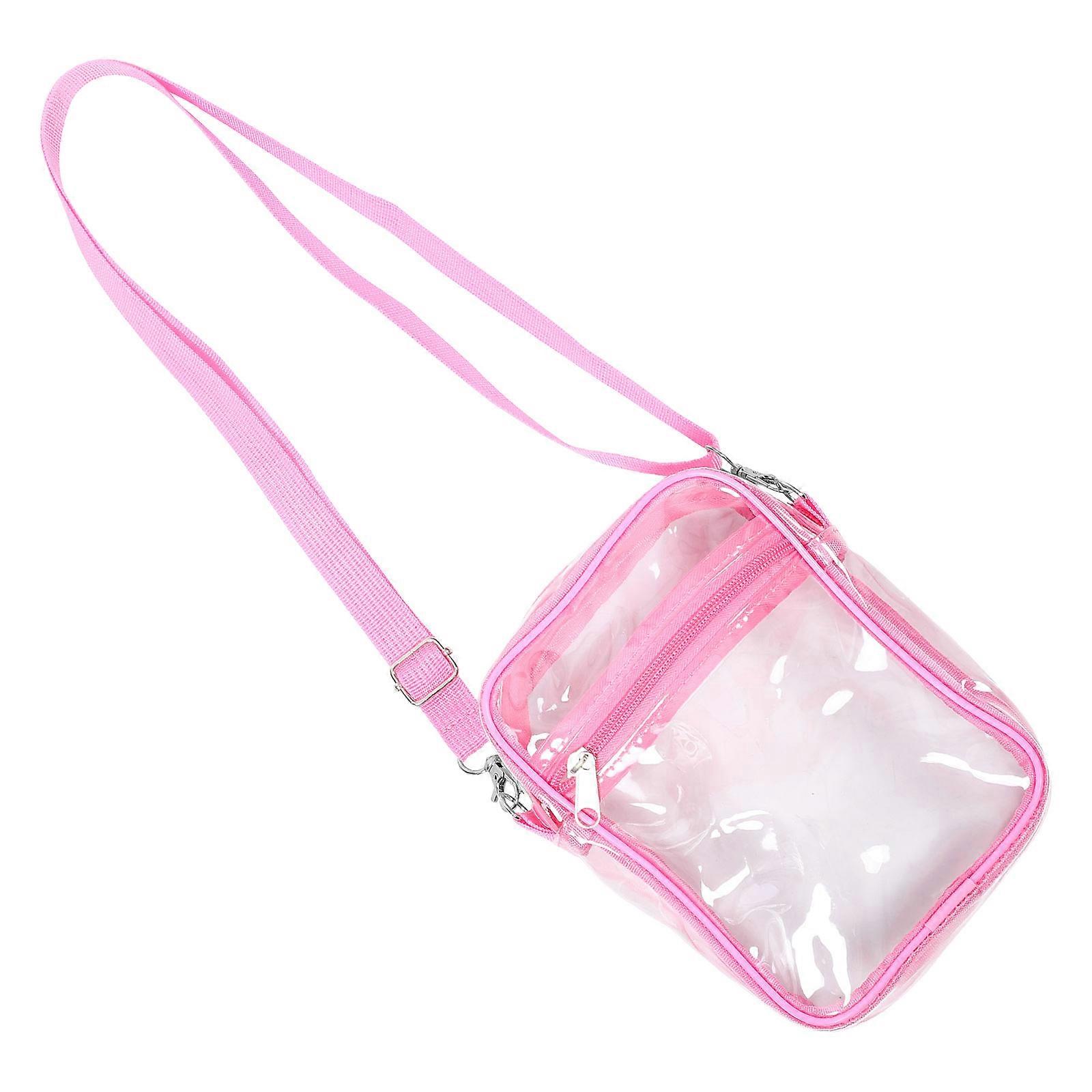 PVC File Bag Crossbody Purse for Storage Transparent Pink Lightweight Single Shoulder Bag