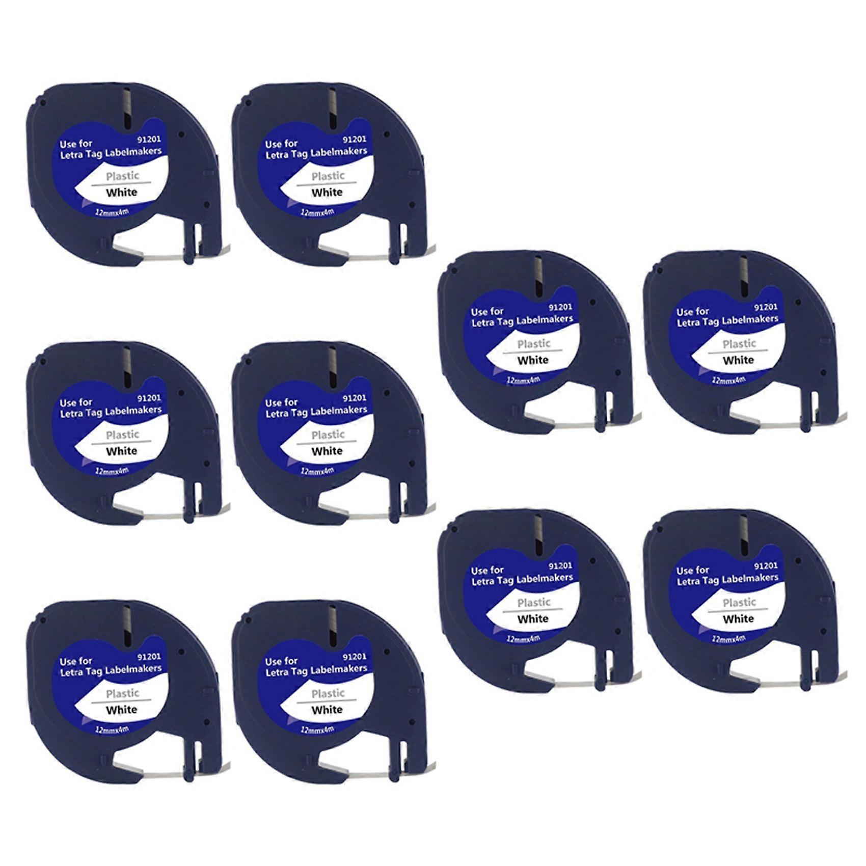10 Pack Plastic Label Tapes for 91201 Black on White (12mm x 4M) for -100H, -100T, -2000, QX50