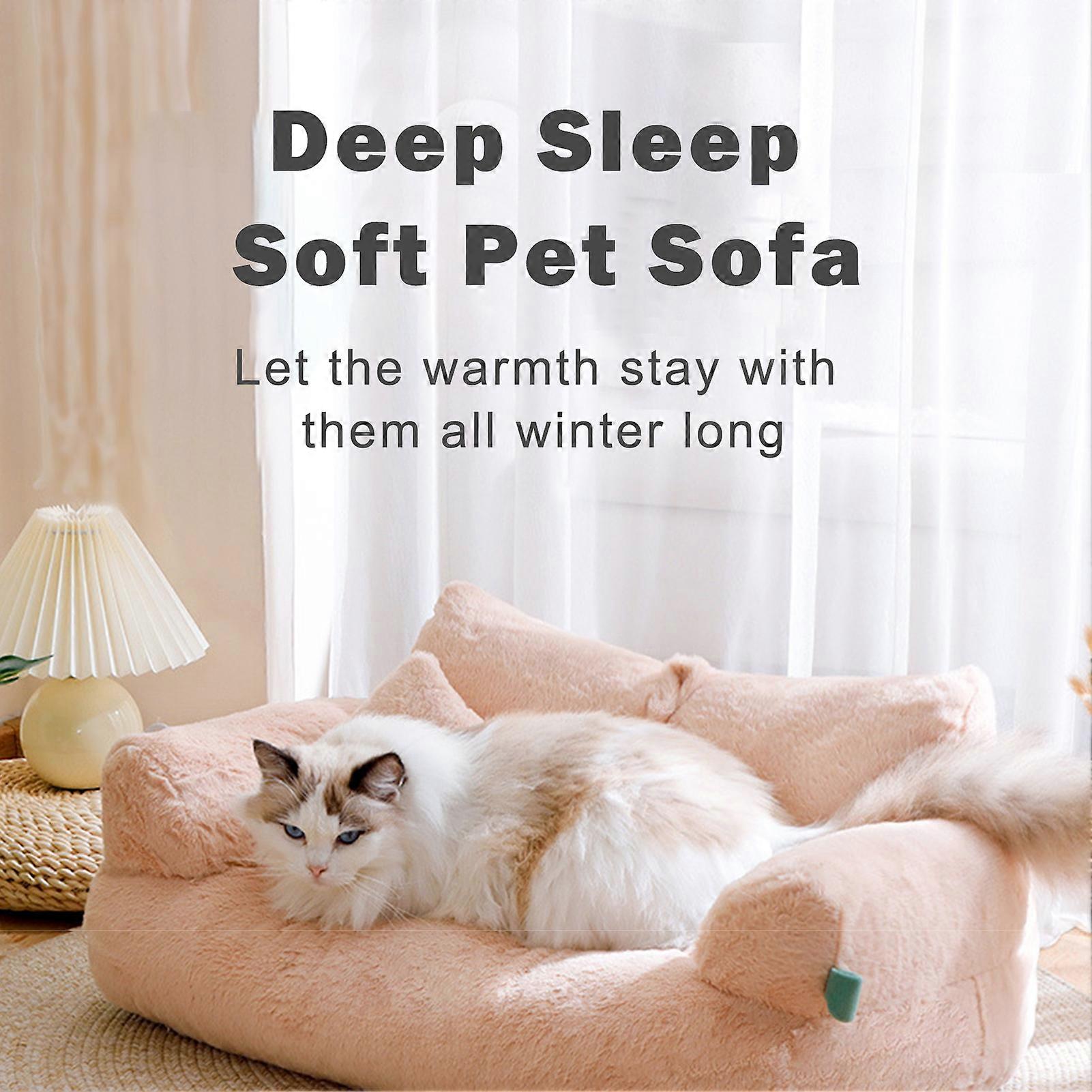 Ultra-Soft Plush Cat Bed M 55x38x18cm Beige Cozy Sofa for Pets