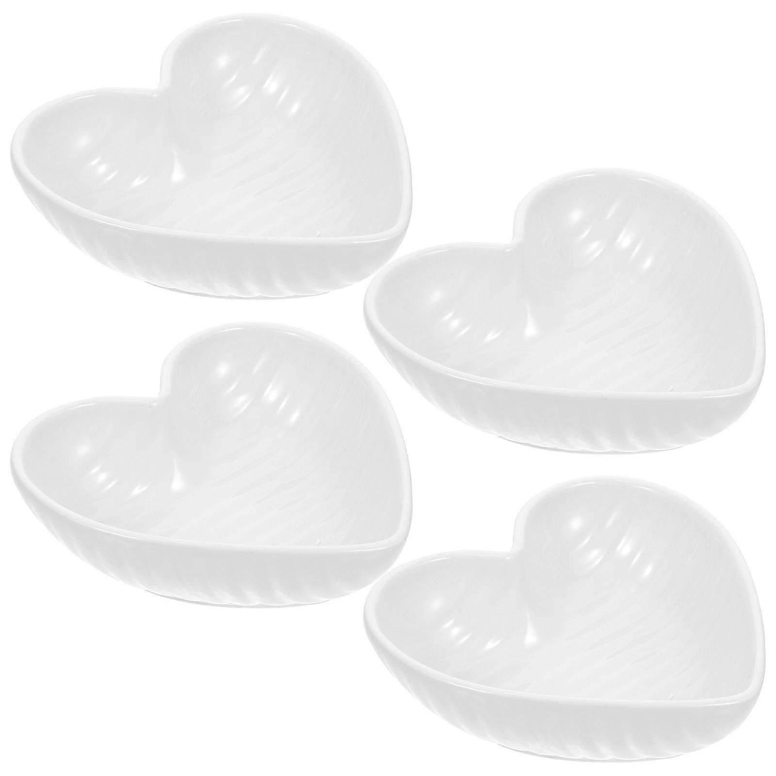 Ceramic Dish 4Pcs White Heart-Shaped Sauce Dipping Bowl Versatile Decor for Kitchen