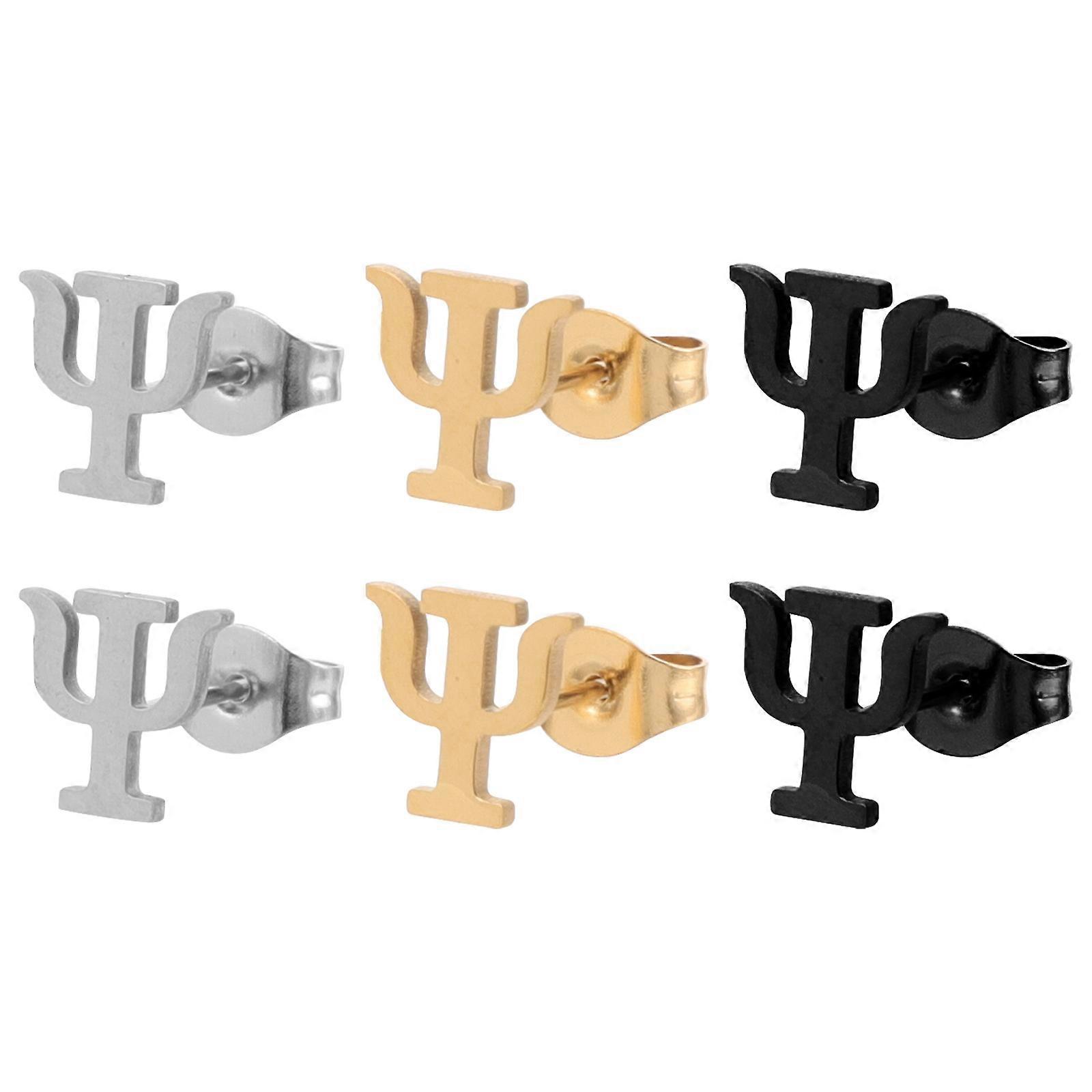 Greek Alphabet Ear Earrings Stainless Steel Charm Earrings 3Pairs for Women
