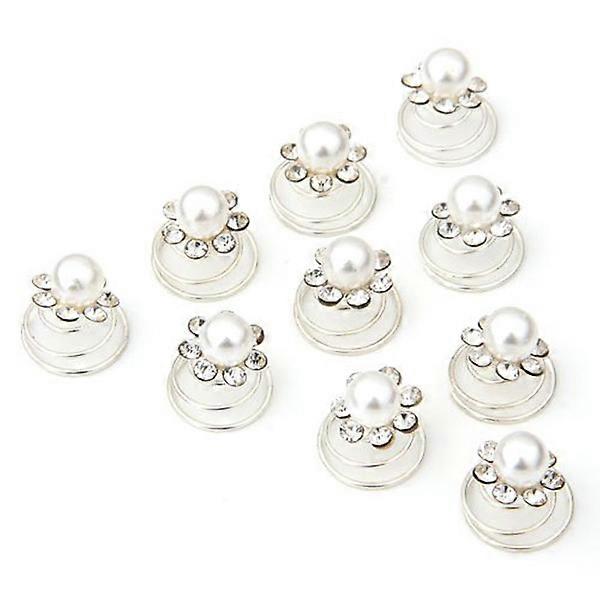 Rhinestone Hair Clips White Metal Spiral Hairpins for Girls 10Pcs Pack