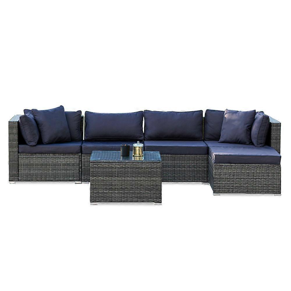 Rattan 5 Seater Modular Outdoor Lounge Setting With Coffee Table Ottoman Grey Patio Furniture Sets