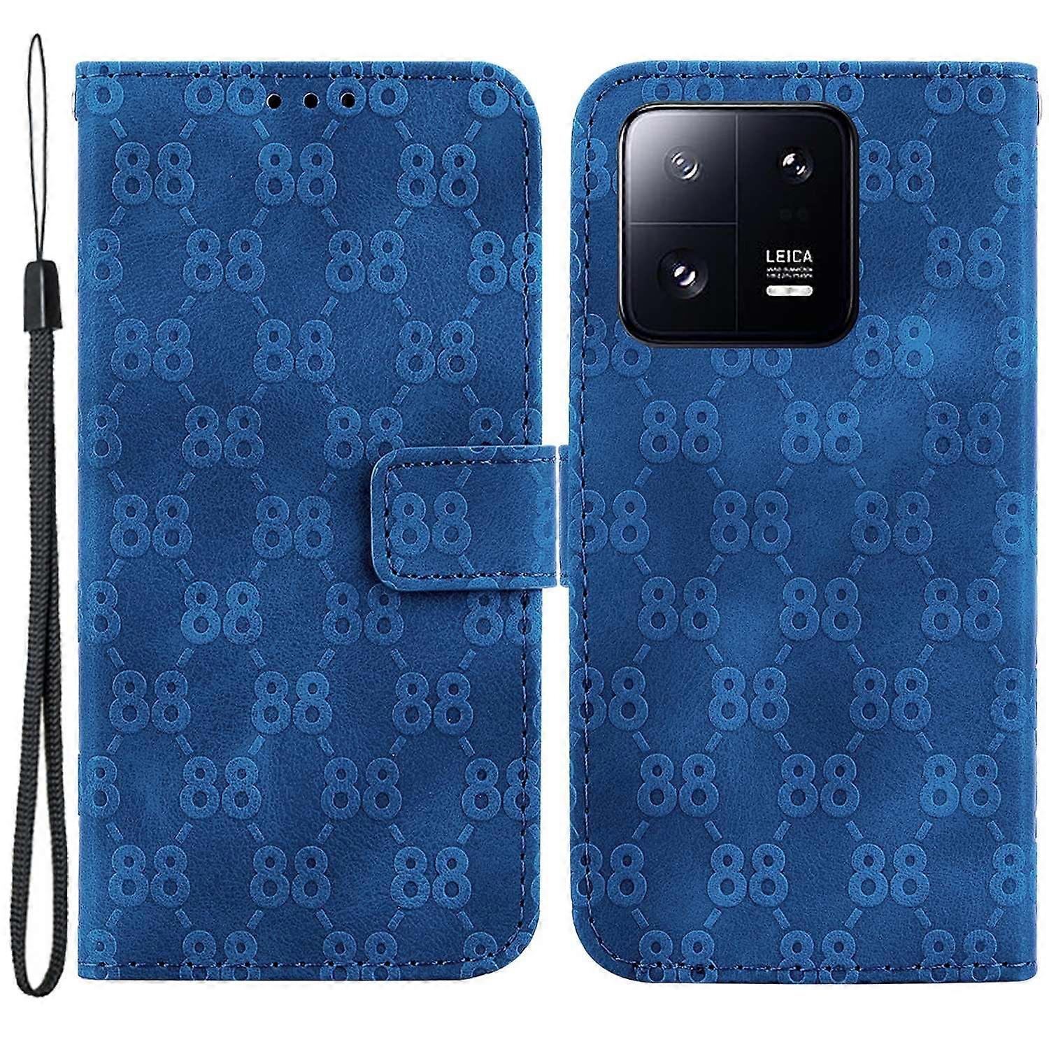 Double 8-Shape Imprint Cover for Xiaomi 13 Pro 5G Flip Stand Leather Wallet Phone Case - Dark Blue