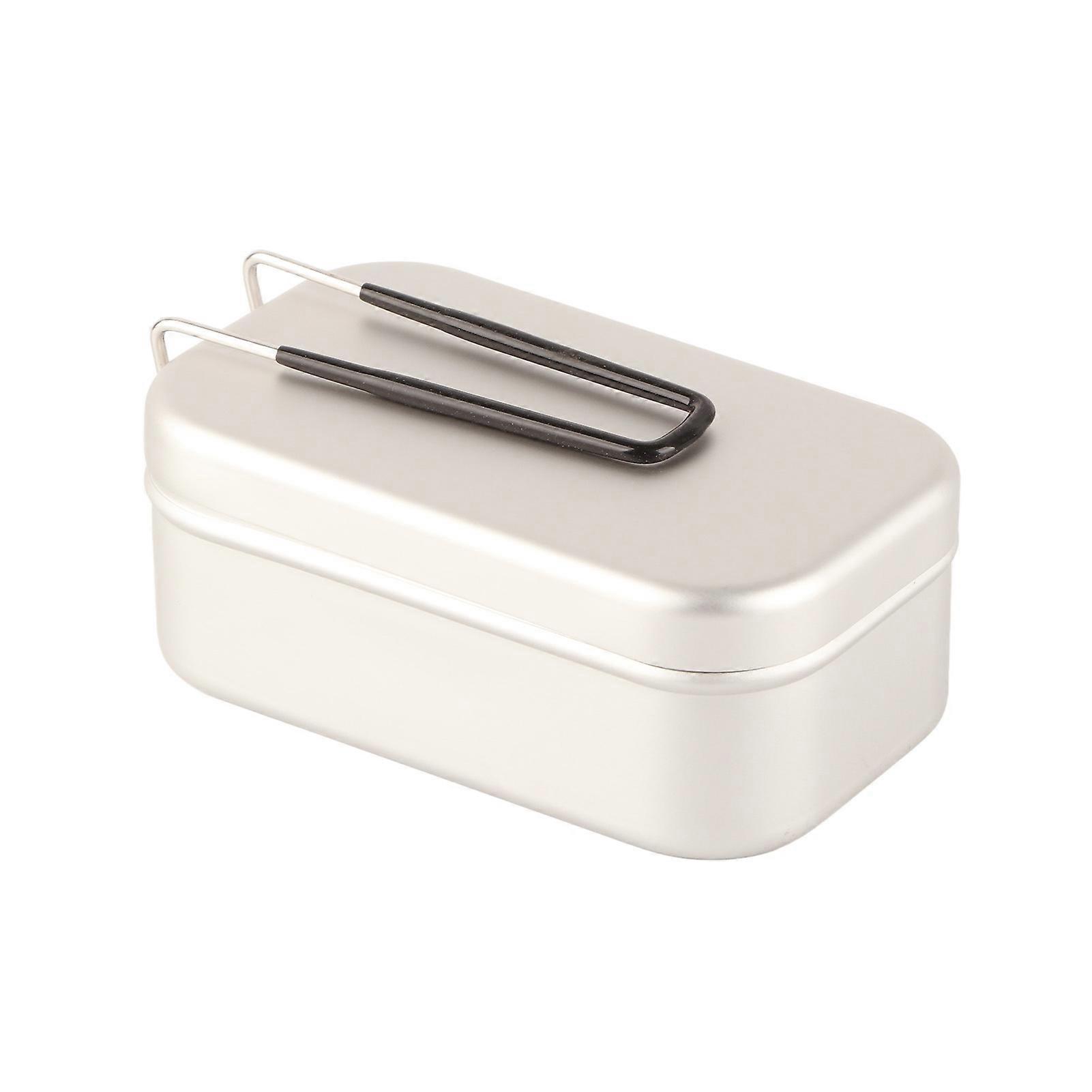 Aluminum Bento Box Folding Handle Portable Stainless Steel Light Weight Cooking Bento Box for Outdoor Picnic Natural Color Aluminum 800ML with Skirt