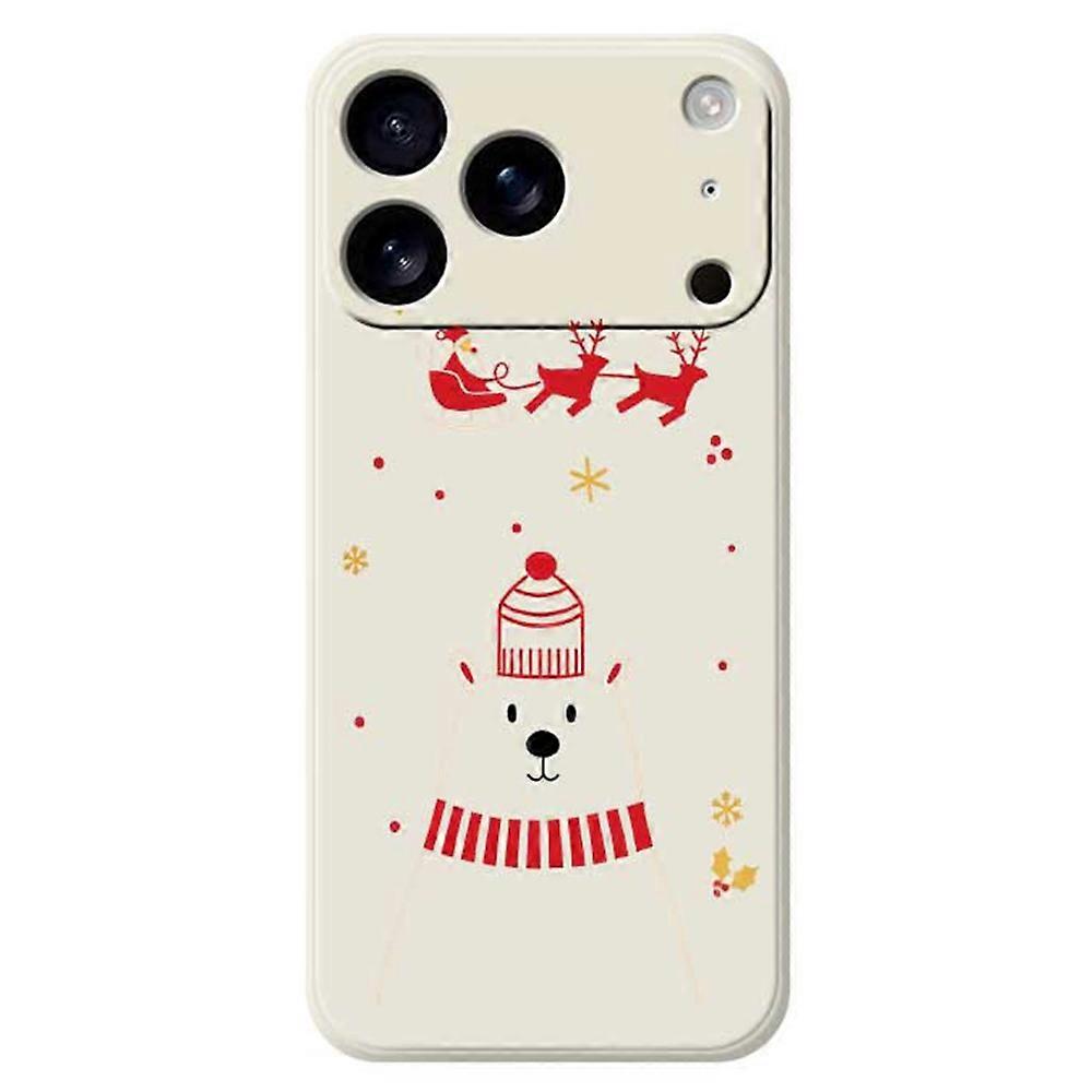 For iPhone 17 Pro Case Bear Pattern Printing Straight Edge TPU Phone Back Cover - Beige