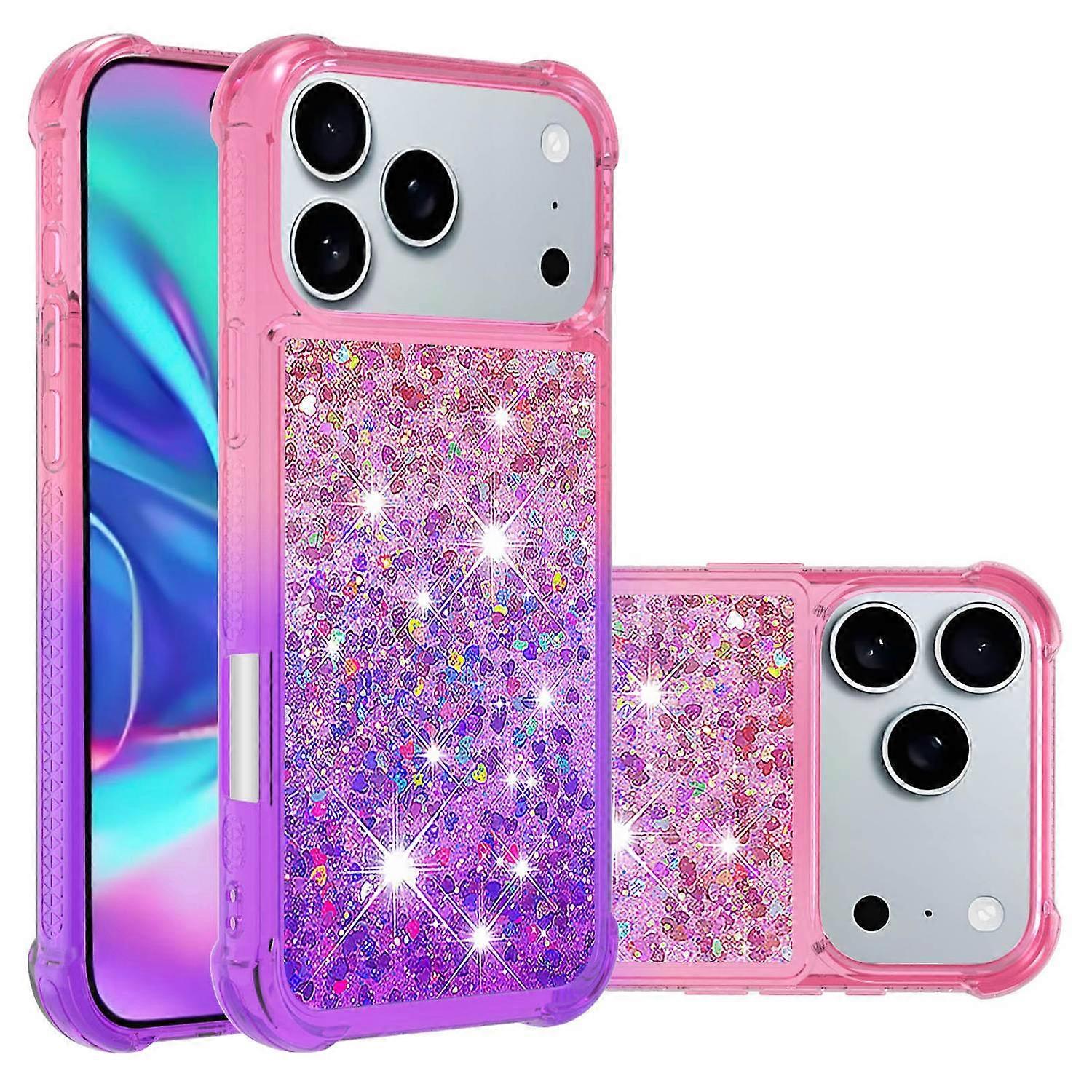 For iPhone 17 Pro Max TPU Case Gradient Quicksand Phone Back Cover - Pink+Purple