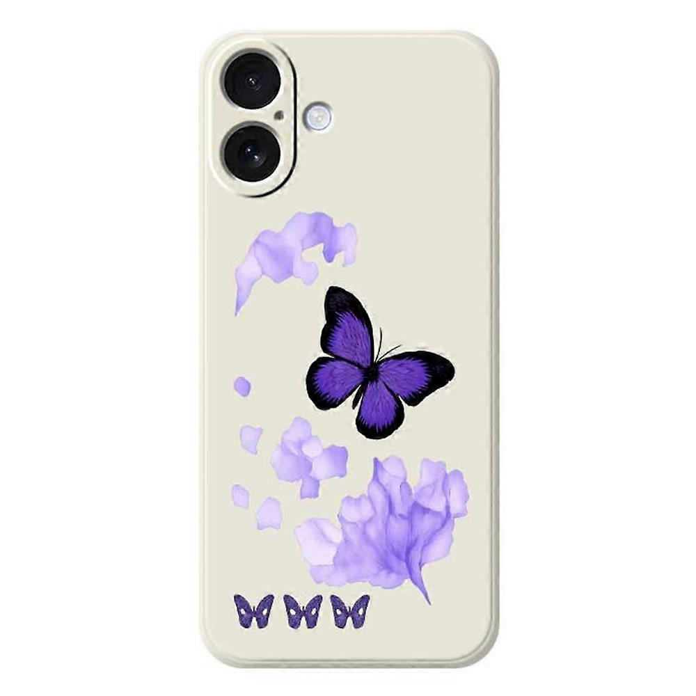 For iPhone 17 Case Purple Butterfly Pattern Printing Straight Edge TPU Phone Back Cover - Beige
