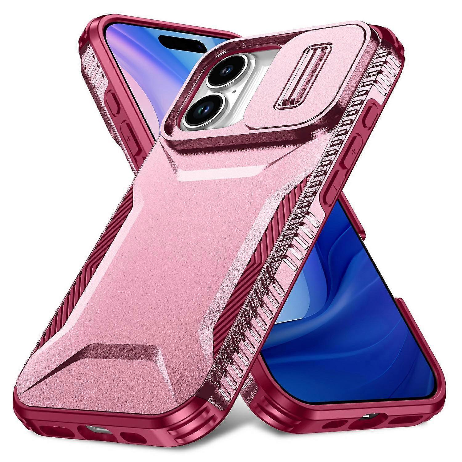 For iPhone 17 Case Camshield TPU + PC Phone Cover Non-Slip Side Edge - Pink Wine Red