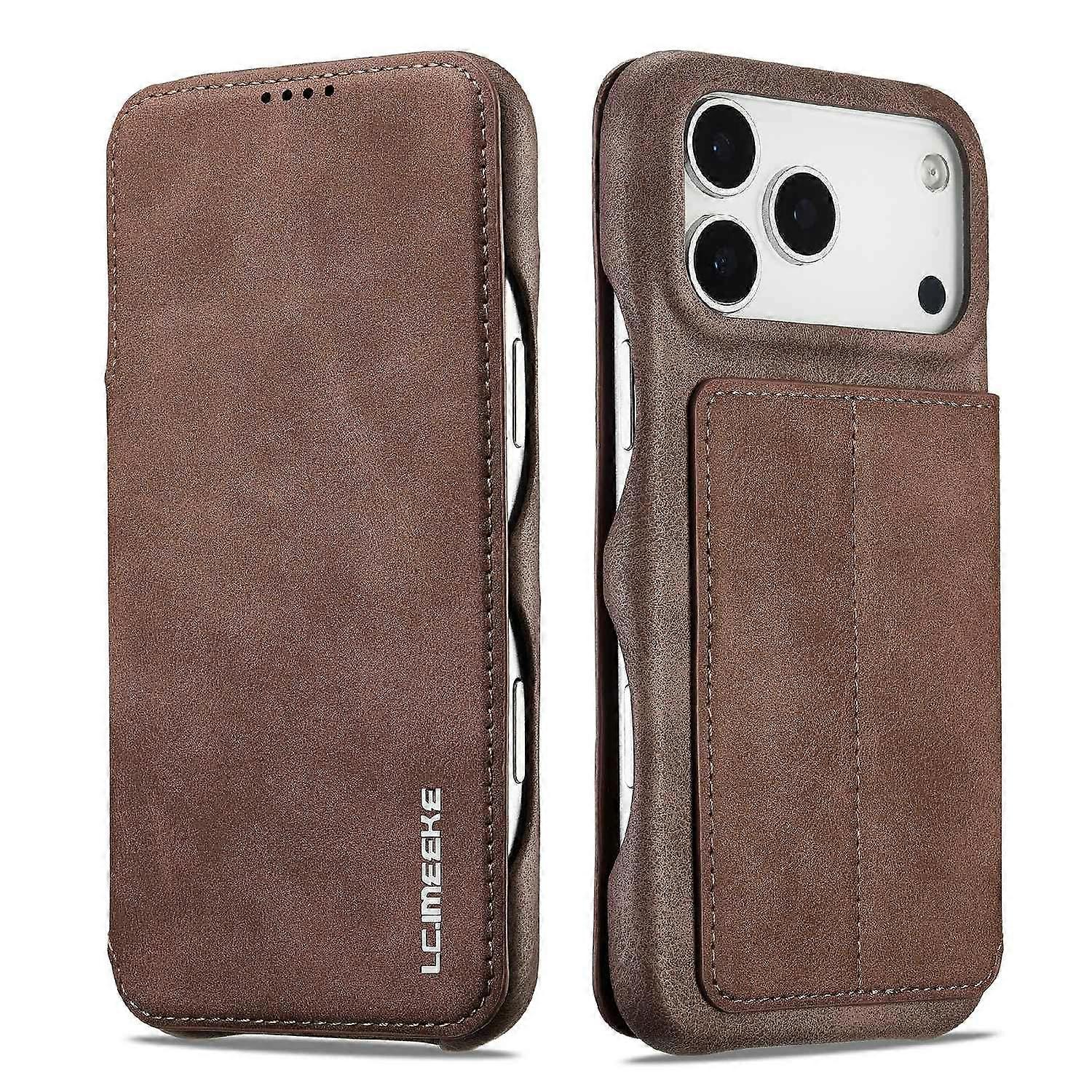 LC.IMEEKE For iPhone 17 Pro Max Case Card Holder Stand Leather Phone Cover - Coffee