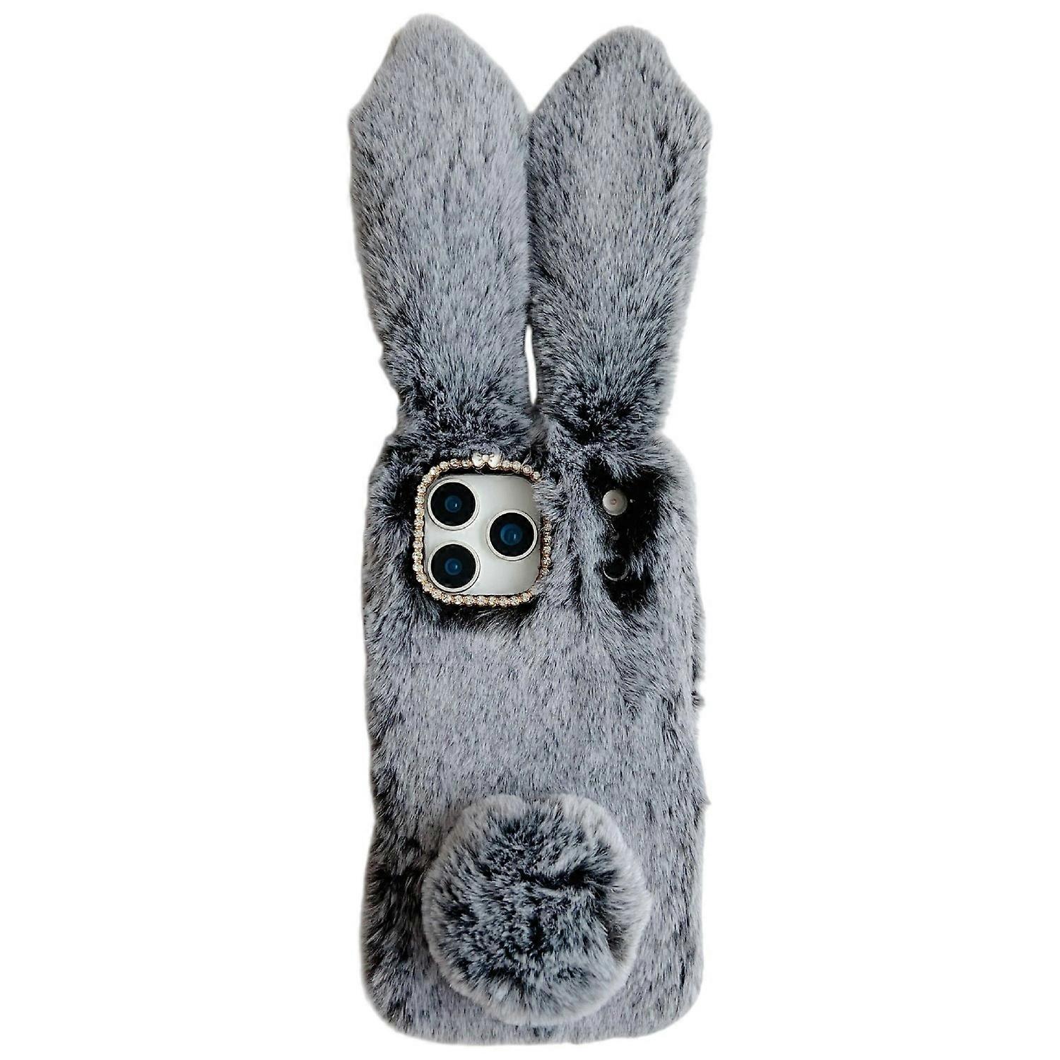 For iPhone 17 Pro Case Plush Cute Bunny Winter Fluffy TPU Phone Cover - Dark Grey