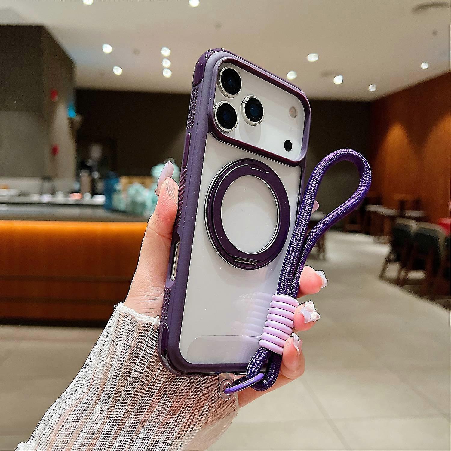 For iPhone 17 Pro Magnetic Case Stress Relief Kickstand TPU + PC Transparent Phone Cover with Wrist